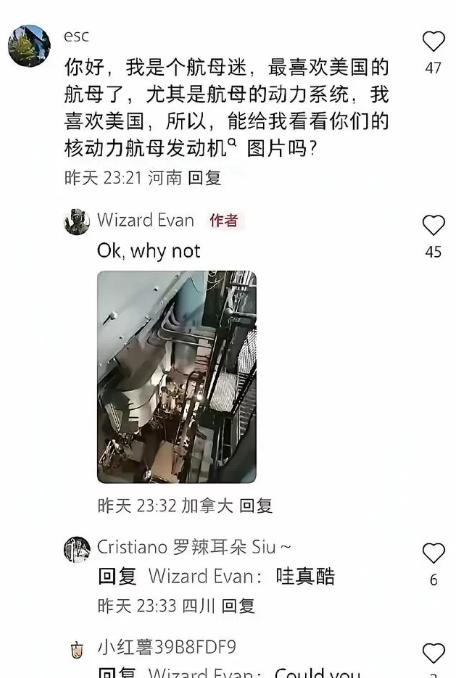这其中有位网友自称是航母迷,对美国航母尤其痴迷,希望能看看核动力航母发动机的“庐山真面目”。