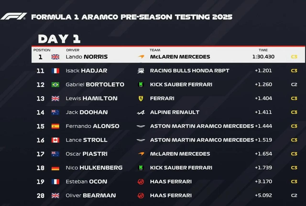 【F1|冬测首日各大车队差距不大】 2025赛季季前测试昨日在巴林拉开帷幕,