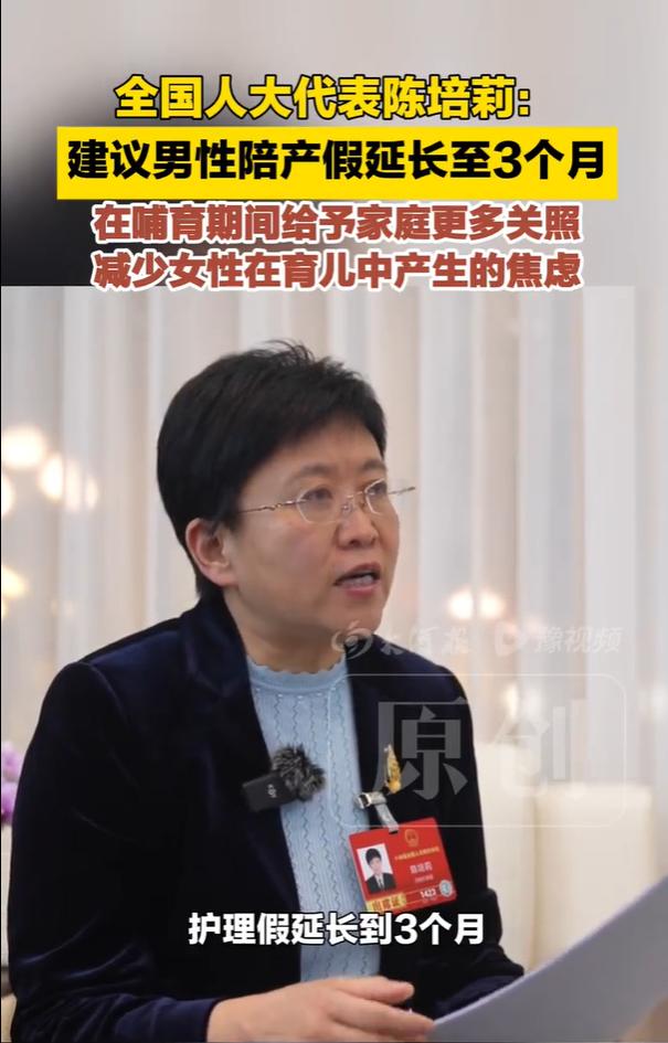 全国人大代表陈培莉建议:男性陪产假延长至3个月。男性是工作中的强者,也可以是家庭的好爸爸好丈夫,在女性育龄期间给予家庭更多关照,可以有效减少女性在育儿中产生的焦虑。