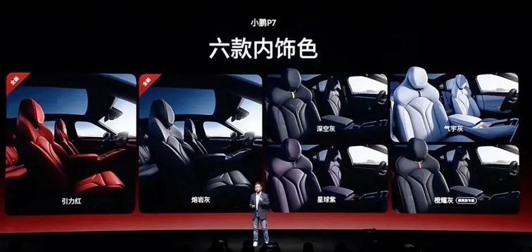 此次发布会上,小鹏P7新增了3款新车色,分别是星曜红、暗夜黑、星云白。内饰新增引力红、熔岩灰配色。此次还新增20英寸六辅运动轮圈,总共提供4款轮圈可供选择。此外,小鹏P7还推出星曜骑士套装,包含星曜红车漆;20英寸和21英寸轮圈;引力红、熔岩灰内饰。以及暗夜骑士套装,包含暗夜黑车漆;专属红色后扰流板底饰板;20英寸和21英寸轮圈;引力红、熔岩灰内饰。