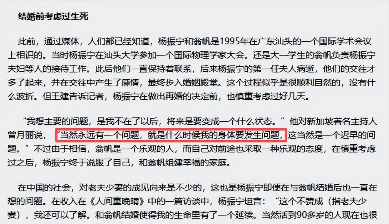 杨振宁先生生前也多次在公开场合称赞翁帆,说她温柔、善良、有学识,是自己晚年最坚实的依靠。