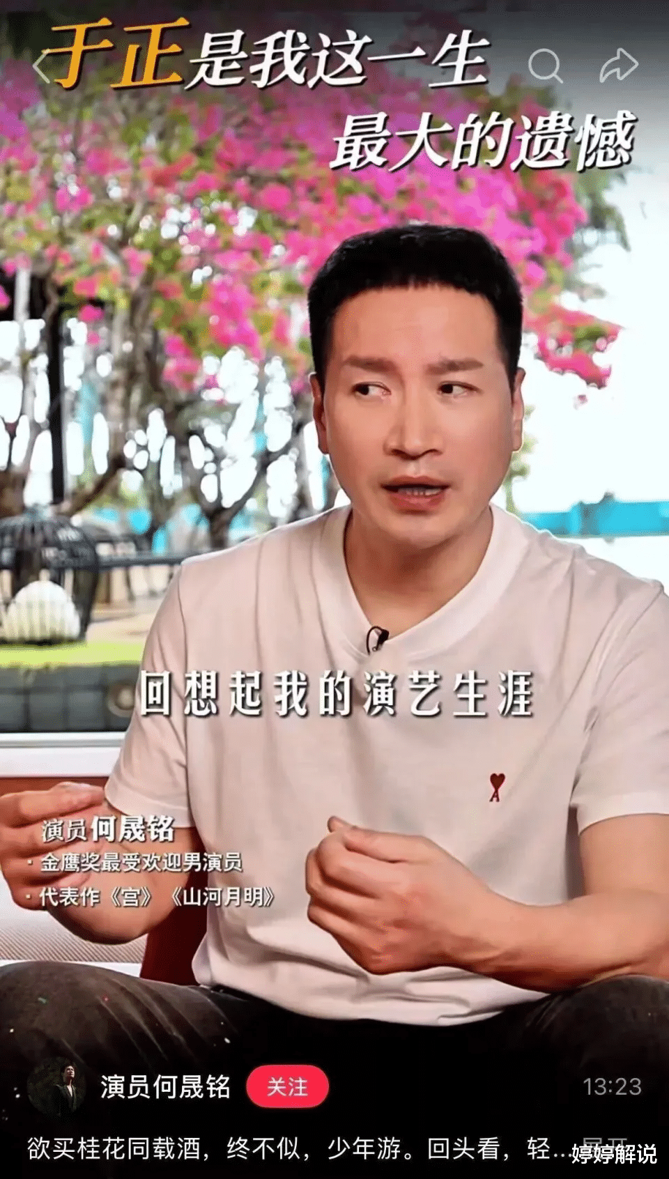 3月13日,何晟铭发了一段视频。视频录制的时间有点特殊——2月28日,于正生日那天。他在镜头前说起一个人,语气平静,但说出来的话让人心里一沉:"他是我这一生最大的遗憾。"