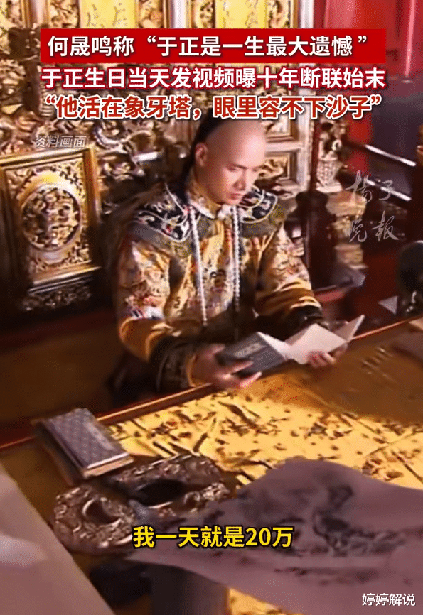 但奇怪的是,即便被删了微信,即便十年没联系,何晟铭说起于正,用的词依然是"贵人"、"并肩作战的兄弟"。他说自己从不后悔认识对方,遗憾的是"两人没能再携手创造更多奇迹"。
