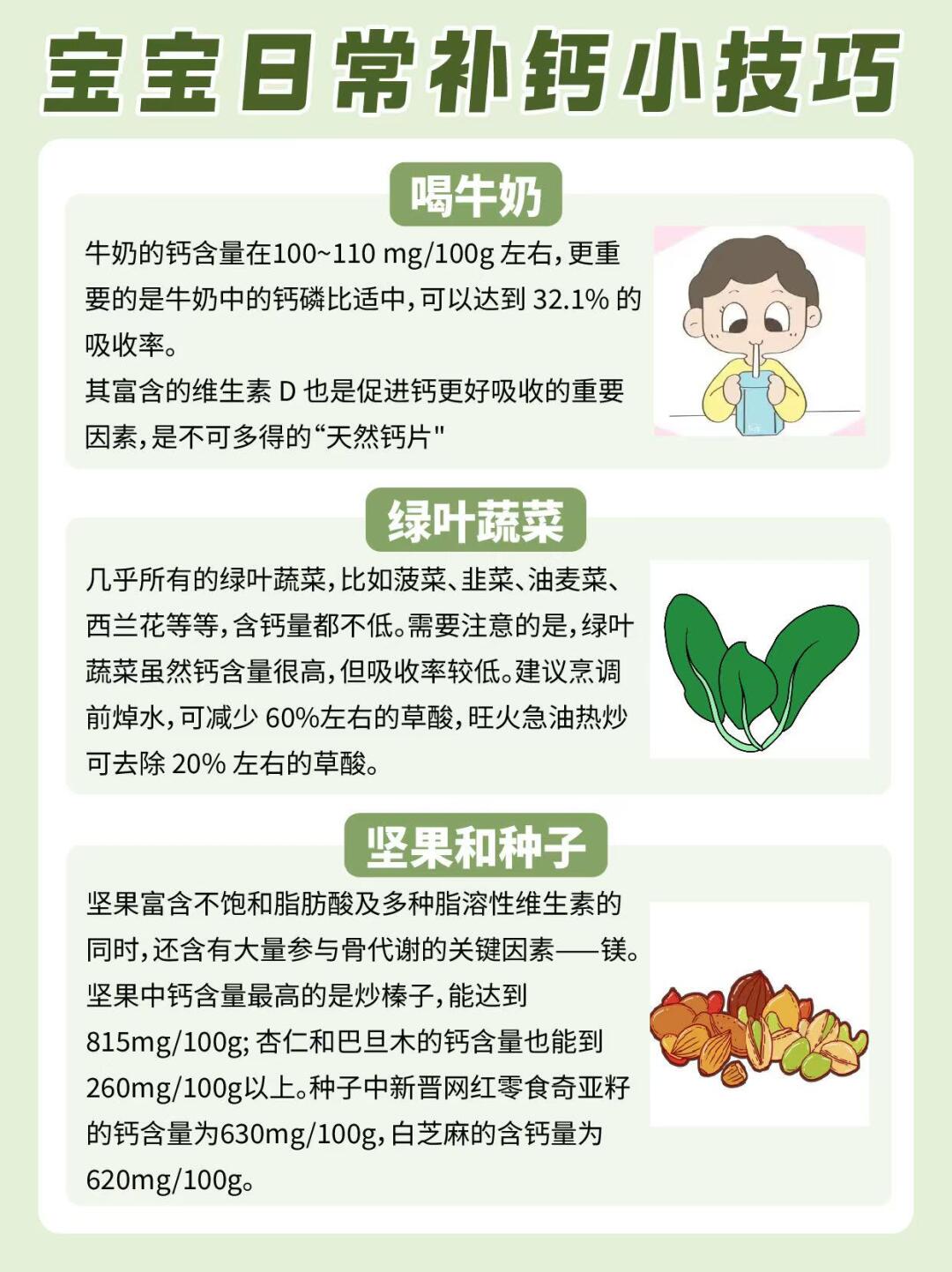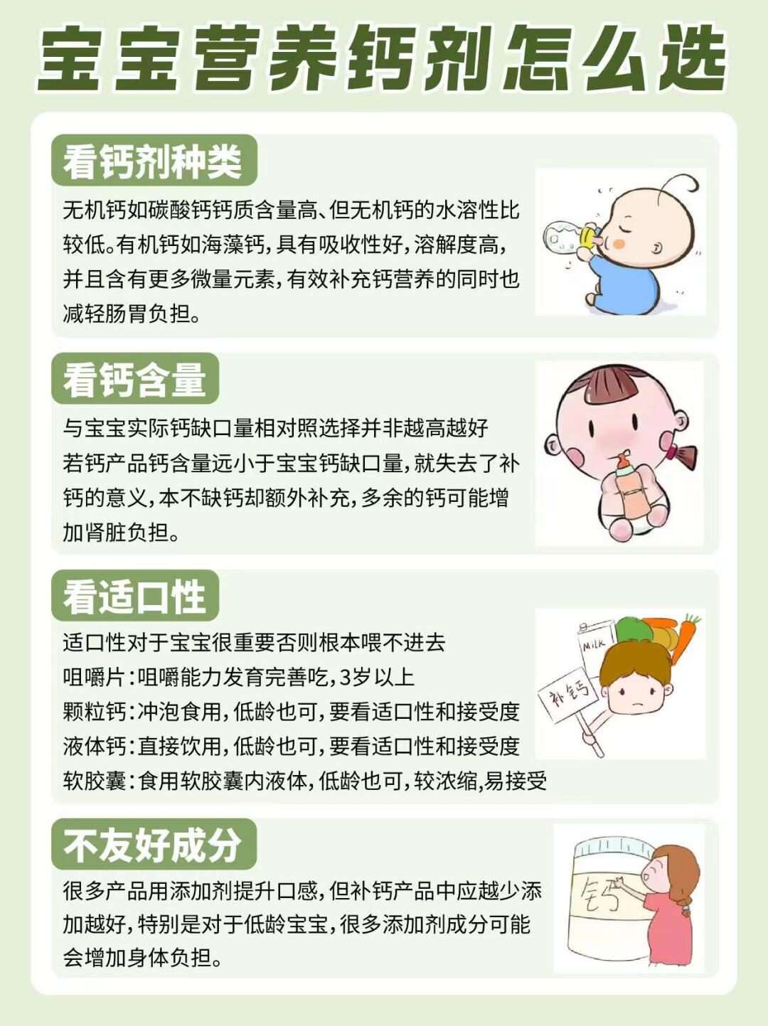 3. **营养剂补充**:挑食或脾胃弱宝宝需搭配钙剂。