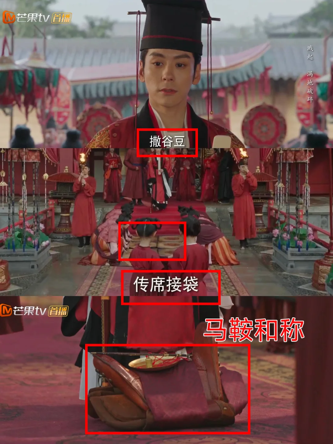 🅱️到了县主家后,撒谷豆、传席、跨马鞍和秤、对镜展拜、牵巾,这些新娘该行的礼刘畅一个都没有少。