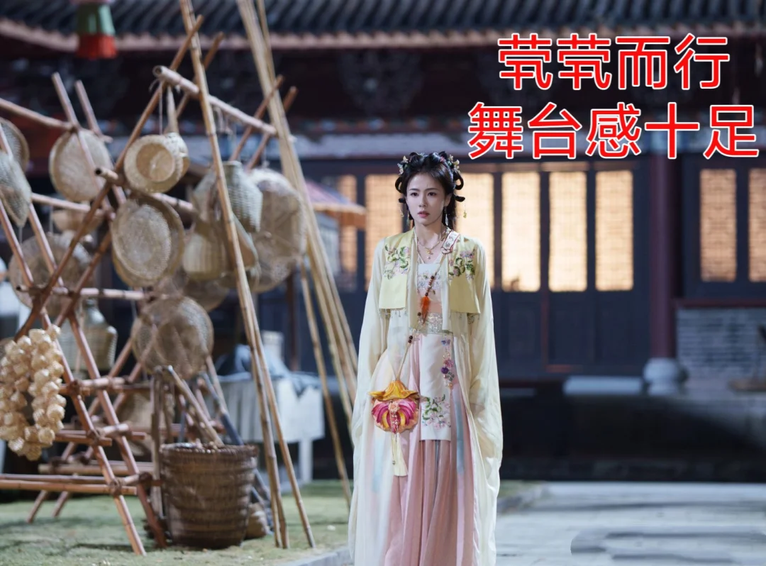 🌸戏剧中粉色、淡黄等相对清新的颜色多为年轻未婚女性所穿,这样的女帔故称闺门帔。