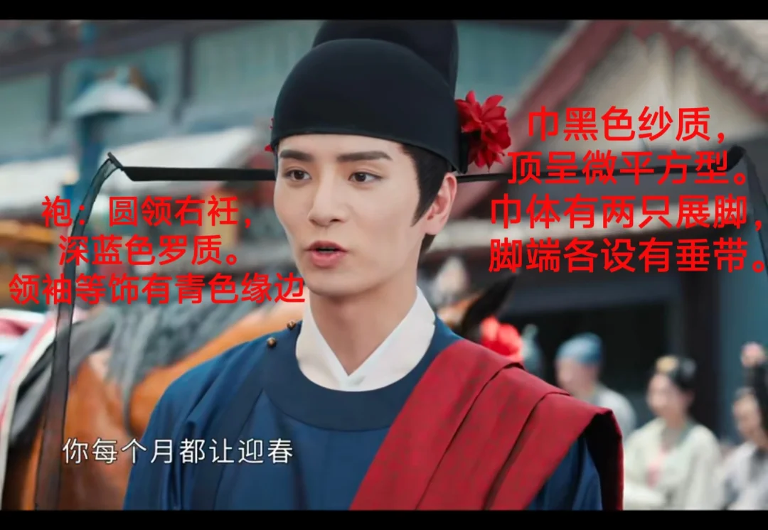 ✅一般披红是在未赐进士服,身着常服也就是儒巾襕袍时所披,正是剧中郑知的穿着方式。