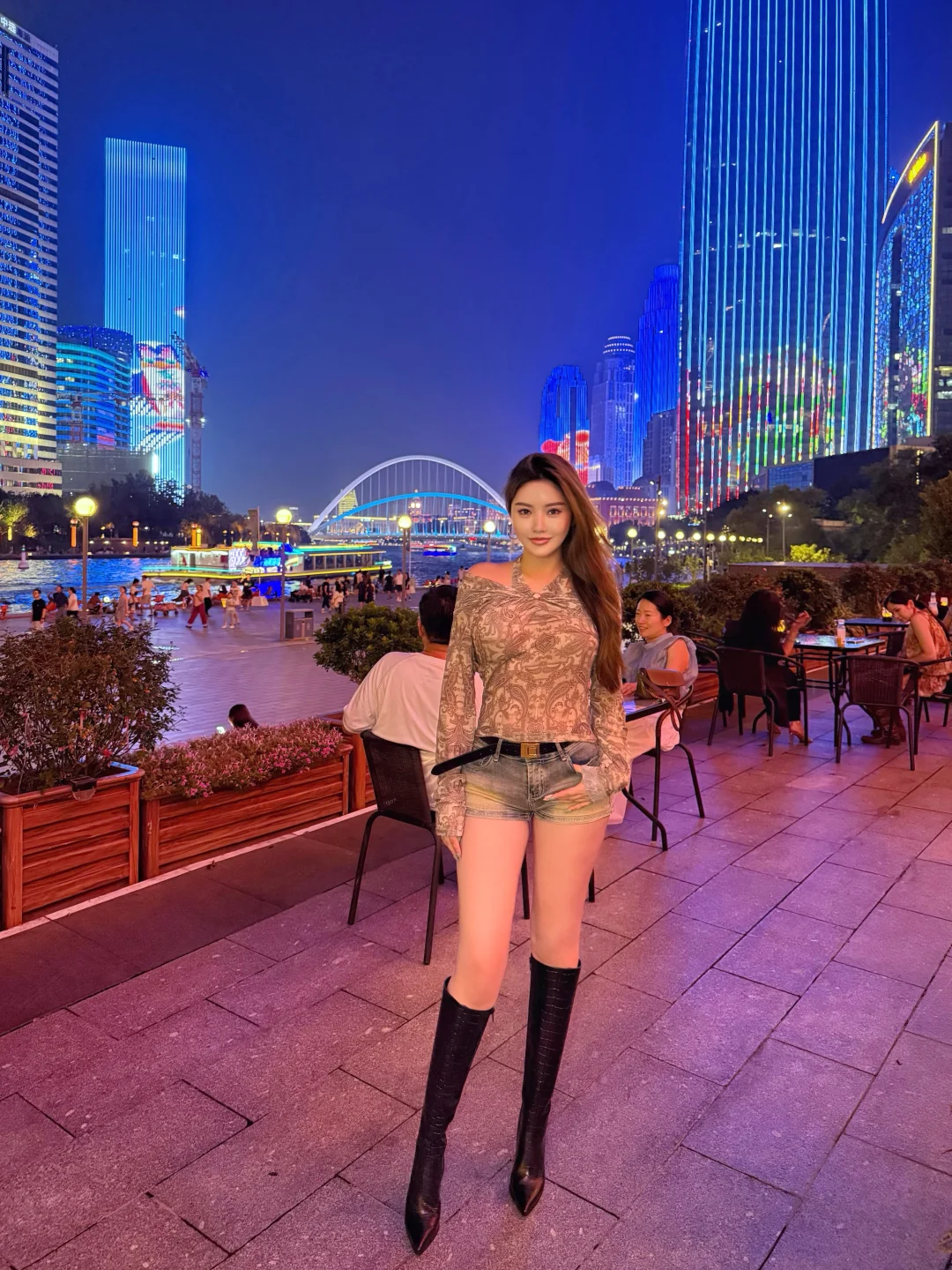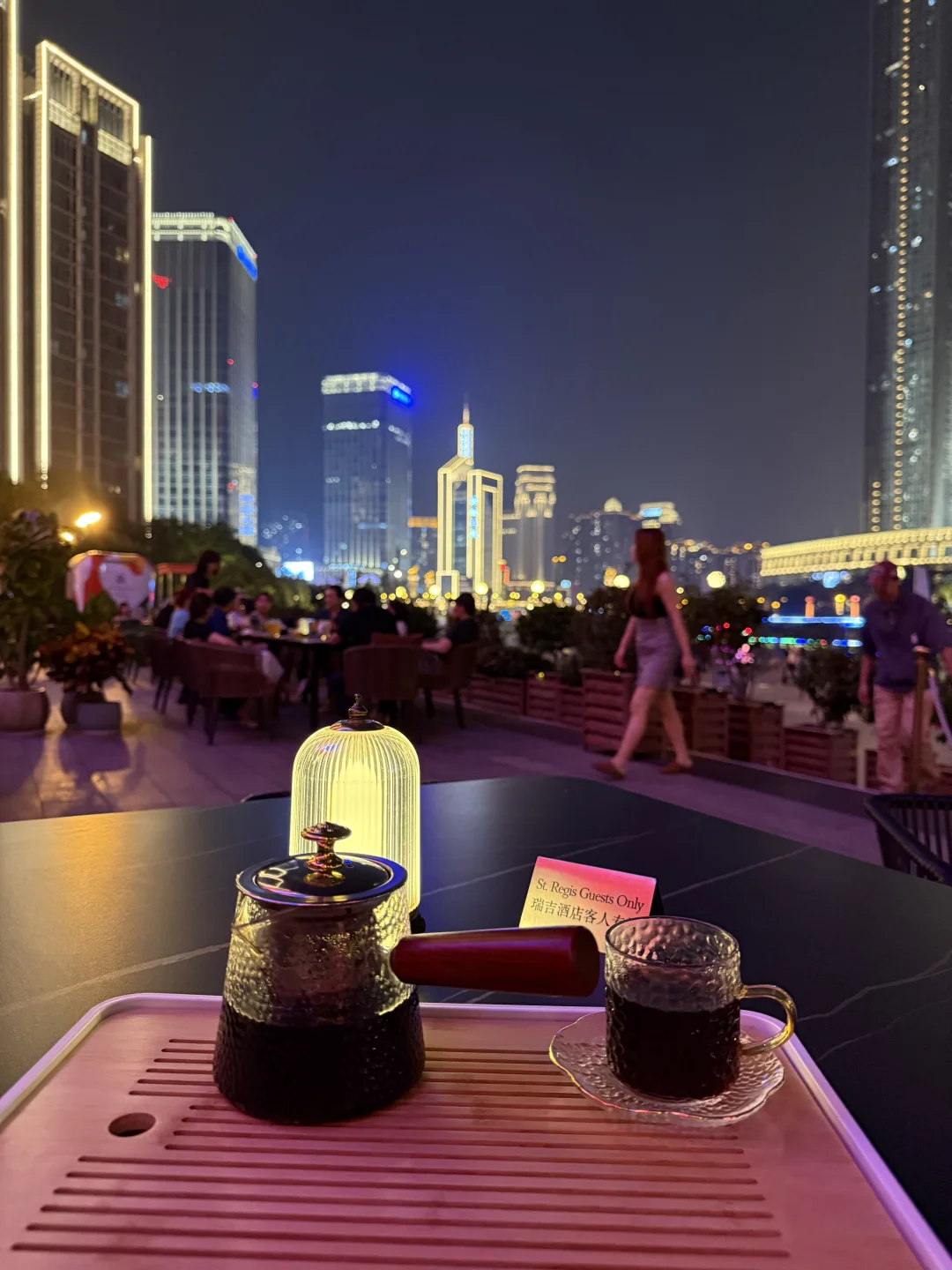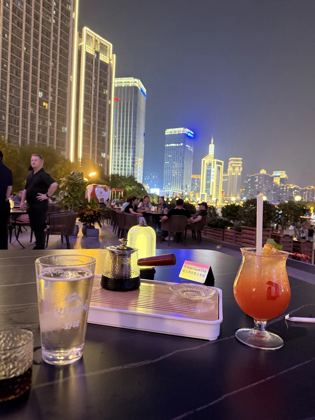 傍晚瑞吉海河边好舒服 温风习习 纳闷没点气泡水🍺问服务员是不是送错了 他指向隔壁桌:对面微笑示意请我们喝 或许看我们两个女生一壶热茶太寡淡?[笑哭R] (谢谢 不过减肥啊哥)