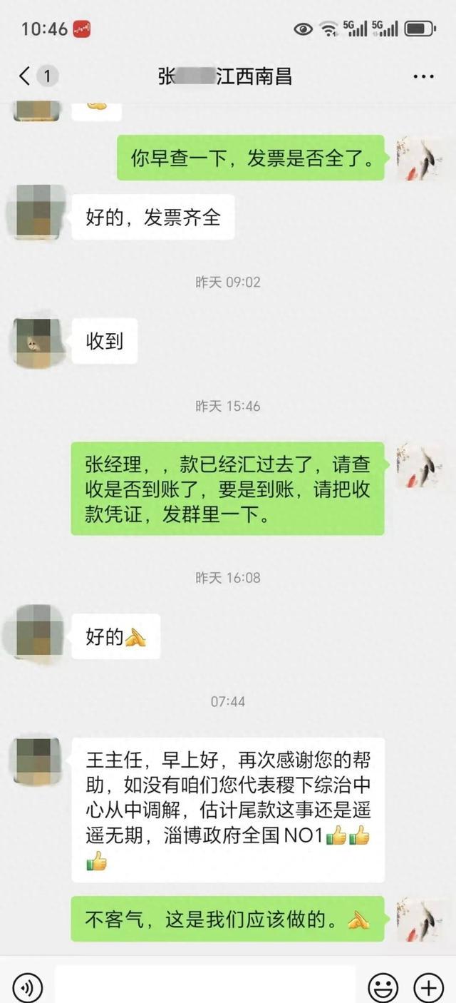 9月下旬,临淄气温骤降,但来自江西某教育科技有限公司的代表心里却暖意浓浓,不停地在微信里对稷下街道综治中心人民调解员王英力表达着内心的深深谢意。“张经理,款已经汇过去了,请查收是否到账!”案件被成功调解后,王英力在微信群内提醒原告查收款项。