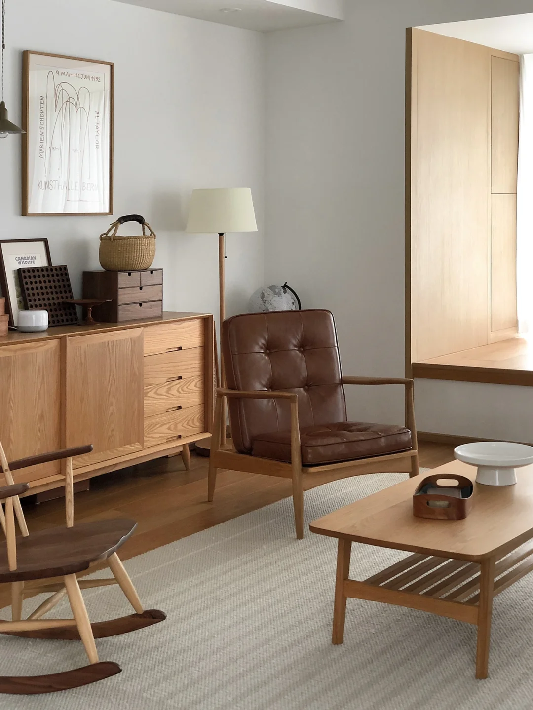 我们家里大部分空间都是原木风格的,对木制品的喜欢已经是一种执念~ 木制品家具有着特殊的魔力,历久弥新,越用越有感情。 橡木、柚木、樱桃木、黑胡桃木,每一种木材都有着自己不同的小脾气。也有着各自的缺点和优点~但都不妨碍对它们的喜爱~ 搬一些之前写过的原木小知识: ❌先说缺点: 原木的材质:选择什么材质?橡木?樱桃木?还是黑胡桃木等等等等,在选择材料之前,要先做好功课哦;比如橡木,刚加工出来的橡木通常是清新的浅黄色,但是在使用1-2年后,橡木在氧化作用下会大幅变黄。又比如樱桃木,新色是暗黄带丢丢红,使用半年到1年后,就会氧化变红~近似红木色的红。选择时候不只是要看现有的木色,还要考虑氧化后的颜色。 原木的保养:原木家具都是需要保养的,尤其是素板,半年一年要打一次木蜡油或者蜂蜡这种,如果是全屋原木风,那也是个体力活哦,如果不保养,就原木就容易干涩开裂,非常的丑。还有,无漆的原木怕烫、怕水、怕潮,使用上需要特别的呵护。 ⭕️再说说优点: 耐用不怕旧:我认为这是原木家具最大的优点,只要保养得当,会越用越爱,原木的材质经得起时间的洗礼,所以你会发现,很多中古家具都是原木材质,因为其他材质在使用几年之后,经过摩擦磕碰会变的特别旧和难看,而原木材质即使有使用痕迹也会很自然,甚至会更温润和生活感。 更容易搭配:原木风爱好者,通常不愁家装的搭配,实在不行就都买原木家具好了,而且各种原木材质堆在一起也不会不和谐,因为质感和颜色上都是近似统一的,如果你不会家装搭配,那相信我,原木风绝对更容易入手。 还有原木家具更容易修补,一些磕碰开裂甚至可以自己动动手搞定;原木风也不容易有甲醛,如果能尽量选择卯榫结构的家具,就可以避开家具甲醛的风险,其他小优点就不一一列举了。 所以,说了那么多,你还会考虑原木风么?
