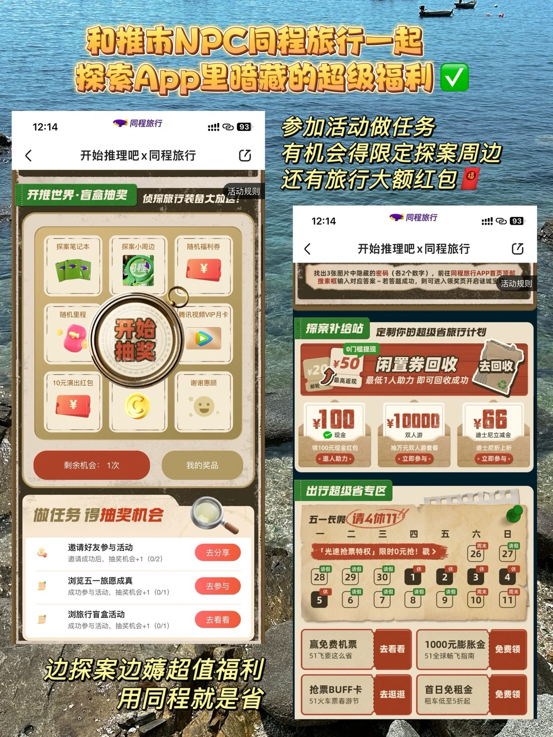 五一假期刚从威海回来,看海的后劲儿太大啦! 熬夜整理威海旅行✈️拍照打卡攻略给你们 赶紧码住~ 📷拍照机位 ▪️火炬八街(图1、4、8、18) ▪️江古咀(图2、7) ▪️海源公园(图3、9) ▪️布鲁威斯号(图5、16) ▪️金沙滩(图11) ▪️那香海(图12) ▪️落日古堡(图13) ▪️小石岛(图15) ▪️远遥码头(图17) 🛣️路线攻略 (我的Day1️⃣是下午从烟台自驾去威海,你们可以根据自己的时间安排来调整) Day1️⃣ 落日古堡→小石岛→金沙滩 Day2️⃣火炬八街→布鲁威斯号→那香海 Day3️⃣海源公园→江古咀→远遥码头 💡旅行小tips: ✅最近威海还是有点凉的,所以一定要带外套,还有防晒霜和墨镜🕶️帽子! ⚠️另外,作为“推土机”的旅行博主必须要和你们宣布一件大事❗️❗️❗️ 谁能想到《开始推理吧3》和同程旅行梦幻联动了~ 同程旅行化身赛博NPC潜入推市迷局,在订机酒/买火车票的行程里暗藏硬核福利! 现在在同程旅行App搜索🔍【开推】 🎁领717推市旅行大礼包(订机酒火车票省一笔) 🕵️参与活动有机会得限定探案周边+旅行大额红包(欧皇速来) 📺腾讯视频VIP免费领(边探案边薅羊毛) 本旅行侦探实测这波福利含金量99.99%!会推理的同程旅行App真能处!