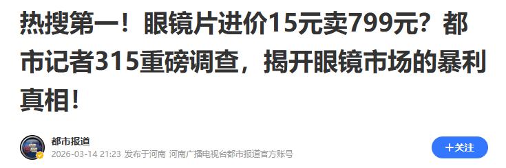 更有甚者,包括镜片、镜框、眼镜盒、眼镜布在内的一整套“全家桶”,出厂成本仅为11元,但只要贴上一个好听的牌子,套上一个“纯钛”、“防蓝光”的噱头,就能卖到大几百甚至上千元。