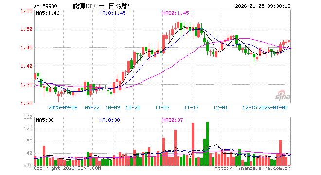 1月5日,能源ETF(159930)开盘涨0.07%,报1.464元。能源ETF(159930)重仓股方面,中国神华开盘涨0.02%,中国石油涨0.00%,陕西煤业涨1.03%,中国石化涨0.32%,中国海油涨0.60%,杰瑞股份涨1.93%,兖矿能源涨0.00%,中煤能源涨0.80%,山西焦煤跌0.16%,潞安环能涨0.00%。