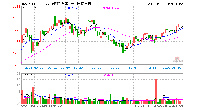 1月8日,科技ETF嘉实(515860)开盘涨0.11%,报1.750元。科技ETF嘉实(515860)重仓股方面,中兴通讯开盘跌0.57%,海康威视跌0.20%,华勤技术涨0.29%,鹏鼎控股跌0.20%,亨通光电涨0.04%,中际旭创跌1.37%,豪威集团跌0.48%,生益科技跌0.14%,中航光电涨0.03%,北方华创涨0.00%。