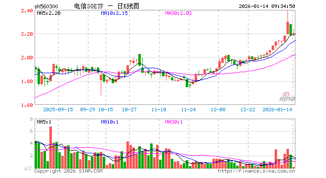1月14日,电信50ETF(560300)开盘涨0.37%,报2.193元。电信50ETF(560300)重仓股方面,新易盛开盘涨1.25%,中际旭创涨1.64%,中国联通跌0.37%,中国移动涨0.00%,中国电信涨0.00%,银之杰跌0.24%,中国卫通跌7.61%,中兴通讯跌0.12%,天孚通信涨1.19%,紫光股份涨0.42%。