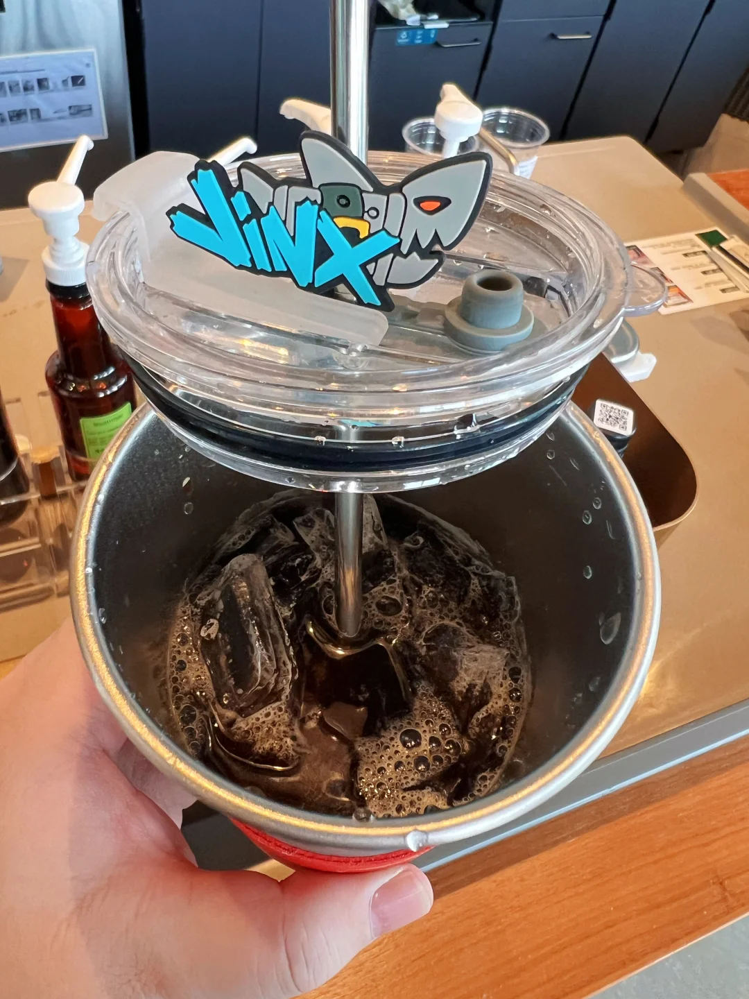 上次没来得及去,今天空闲赶上了,可以带杯子去星巴克免费领一杯冰美式,幸亏楼下有好几家店,赶在12点活动结束之前领了一杯,这个金克丝的不锈钢杯子终于用上了,别说,白嫖的感觉格外好喝…☕️