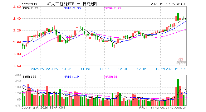 1月19日,AI人工智能ETF(512930)开盘跌0.42%,报2.387元。AI人工智能ETF(512930)重仓股方面,新易盛开盘跌1.25%,中际旭创跌1.94%,寒武纪跌0.14%,澜起科技跌0.76%,中科曙光涨0.93%,科大讯飞涨0.13%,豪威集团涨0.00%,海康威视涨0.00%,浪潮信息跌0.88%,金山办公跌0.93%。