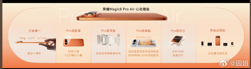 #荣耀Magic8 Pro Air#荣耀绿洲护眼屏加持,4320Hz调光,10大护眼能力加上6000nit的峰值亮度,护眼新标杆,搭载3D超声波指纹,立体声双扬声器,支持eSIM与实体SIM的四卡双待,80W有线+50W无线双快充,天玑9500旗舰芯。12GB+256GB、12GB+512GB、16GB+512GB和16GB+1T版本,售价分别为4999元、5299元、5599元和5999元,国补到手价分别为4499元、4799元、5099元和5499元。#荣耀发布会##Air手机界来了个真Pro#