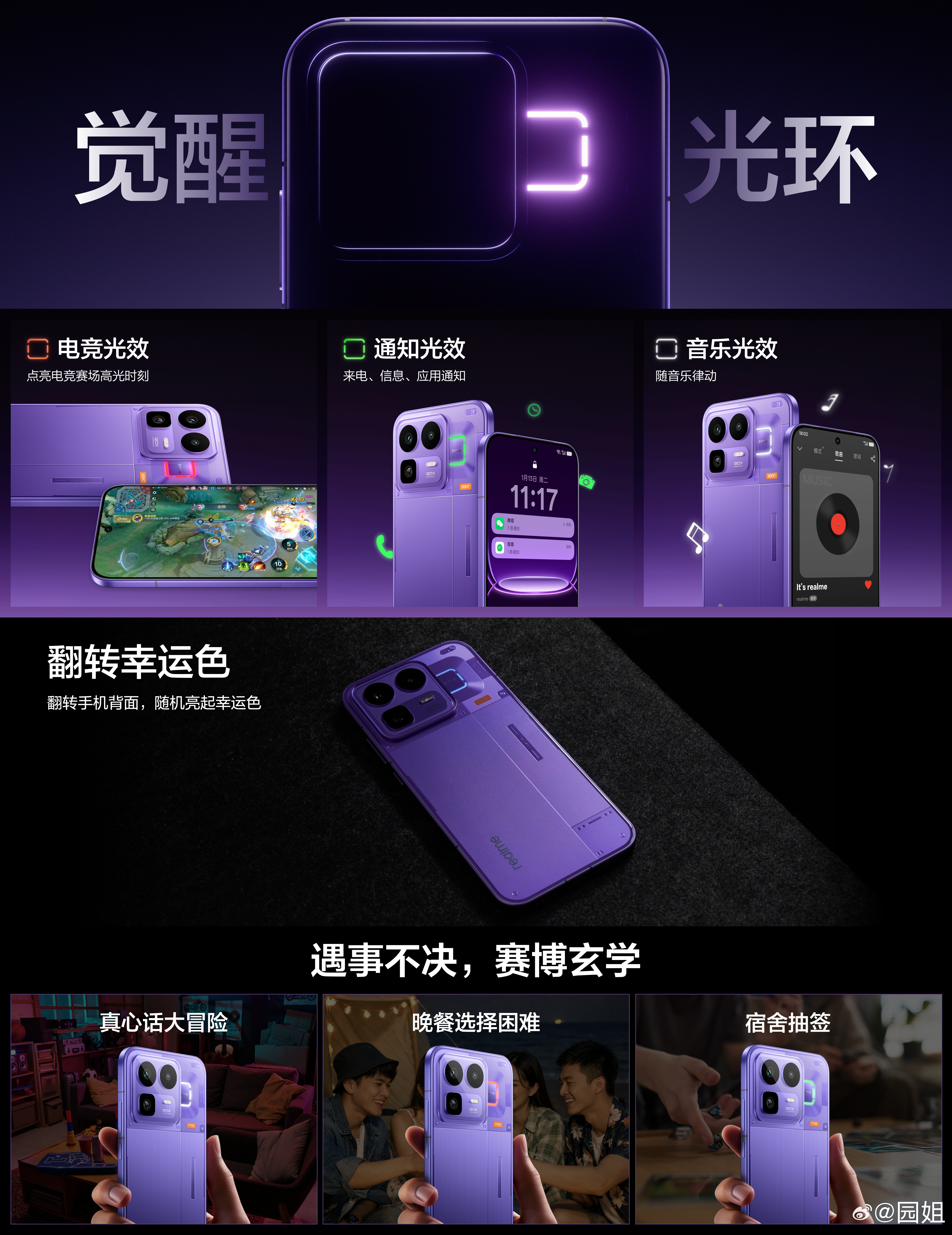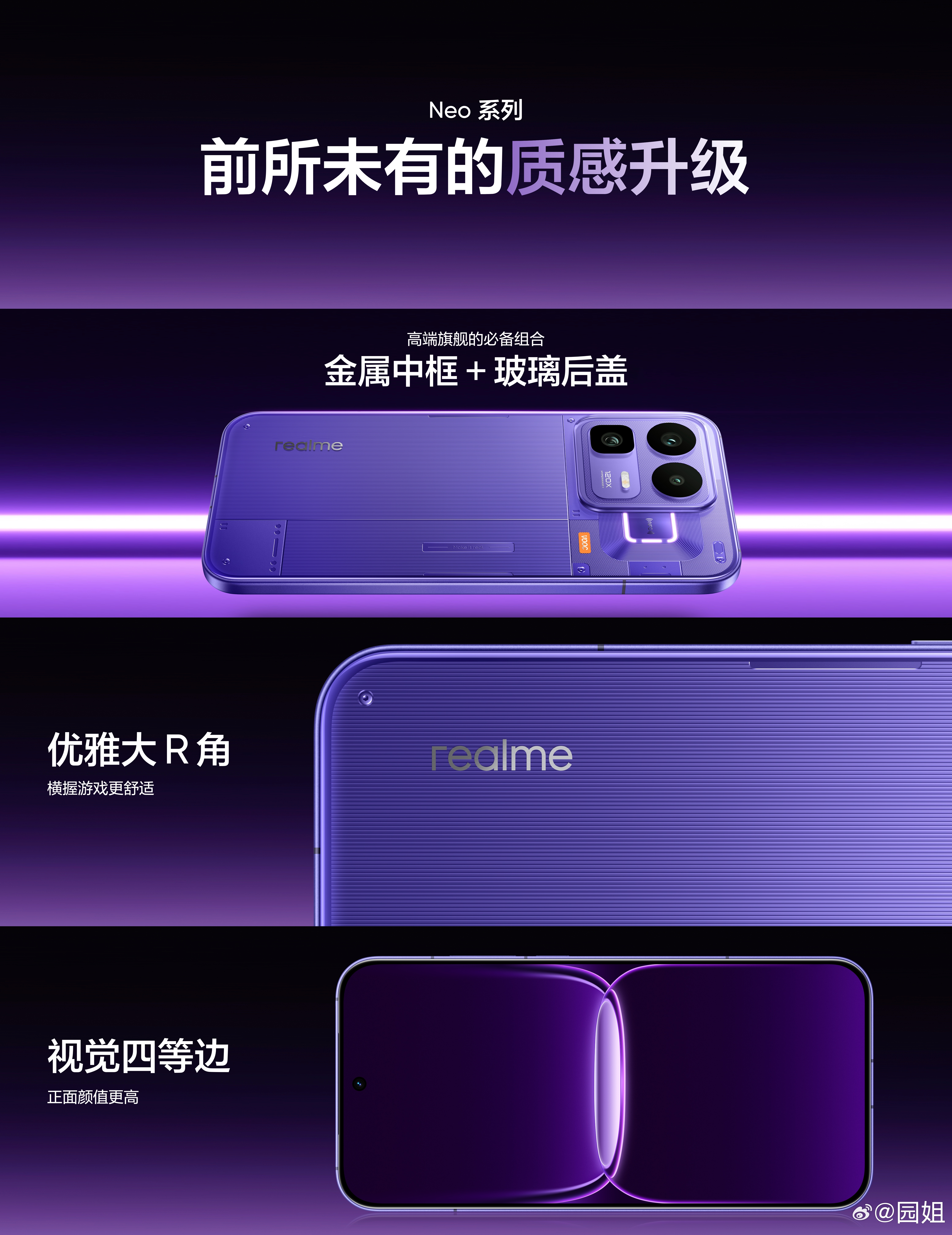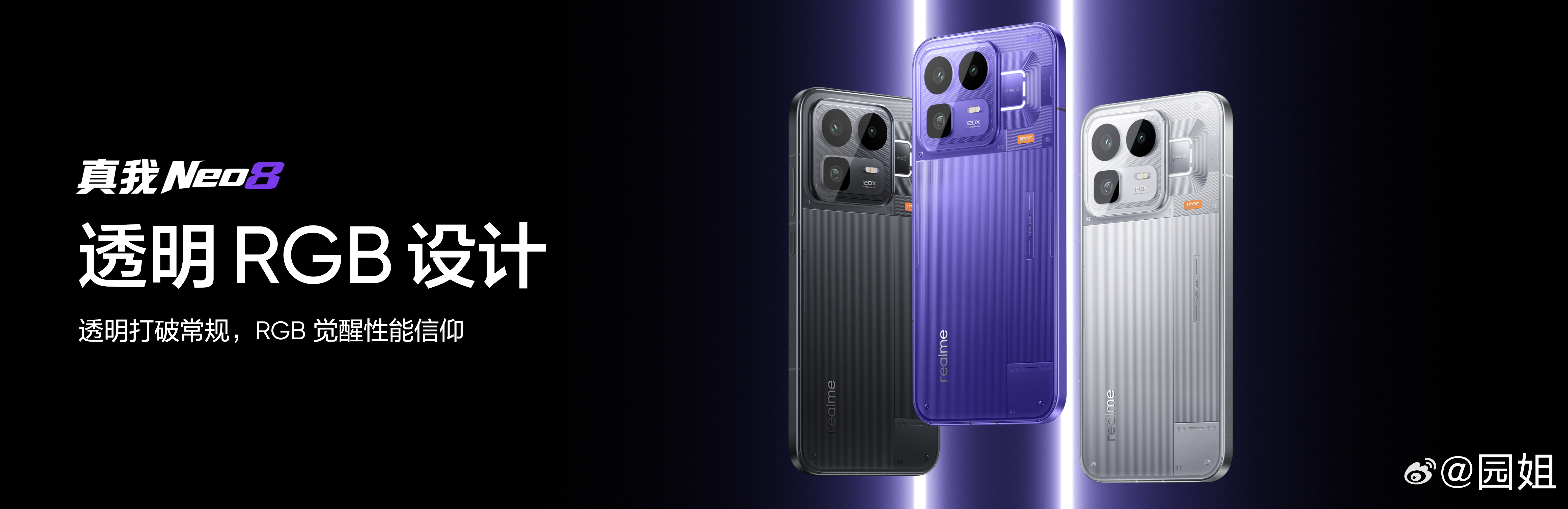#真我Neo8#透明RGB设计,觉醒光环回归,支持电竞、通知、音乐等专属光效,游戏联动、音乐律动、拍照倒计时、智慧弹码等功能之外,更有独创翻转幸运色,翻转手机背面,随机点亮每日幸运色,磨砂金属中框+透明玻璃后盖,优雅大R角,正面超窄视觉四等边,颜值与沉浸感同步提升。三款配色你喜欢哪款?