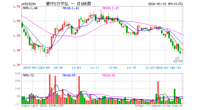 1月23日,银行ETF天弘(515290)开盘涨0.07%,报1.390元。银行ETF天弘(515290)重仓股方面,招商银行开盘涨0.00%,兴业银行涨0.10%,工商银行涨0.00%,农业银行跌0.15%,交通银行涨0.15%,浦发银行涨0.00%,江苏银行涨0.10%,平安银行涨0.00%,上海银行涨0.21%,民生银行涨0.27%。