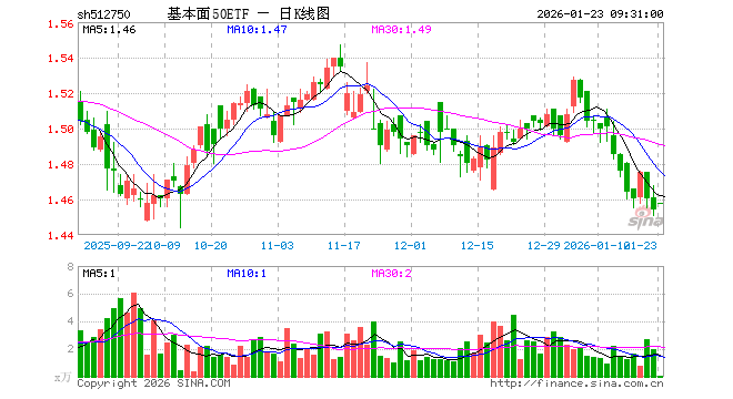1月23日,基本面50ETF(512750)开盘涨0.28%,报1.458元。基本面50ETF(512750)重仓股方面,中国平安开盘涨0.62%,招商银行涨0.00%,兴业银行涨0.10%,中国建筑涨0.20%,工商银行涨0.00%,贵州茅台涨0.00%,宁德时代涨0.64%,交通银行涨0.15%,美的集团涨0.10%,农业银行跌0.15%。