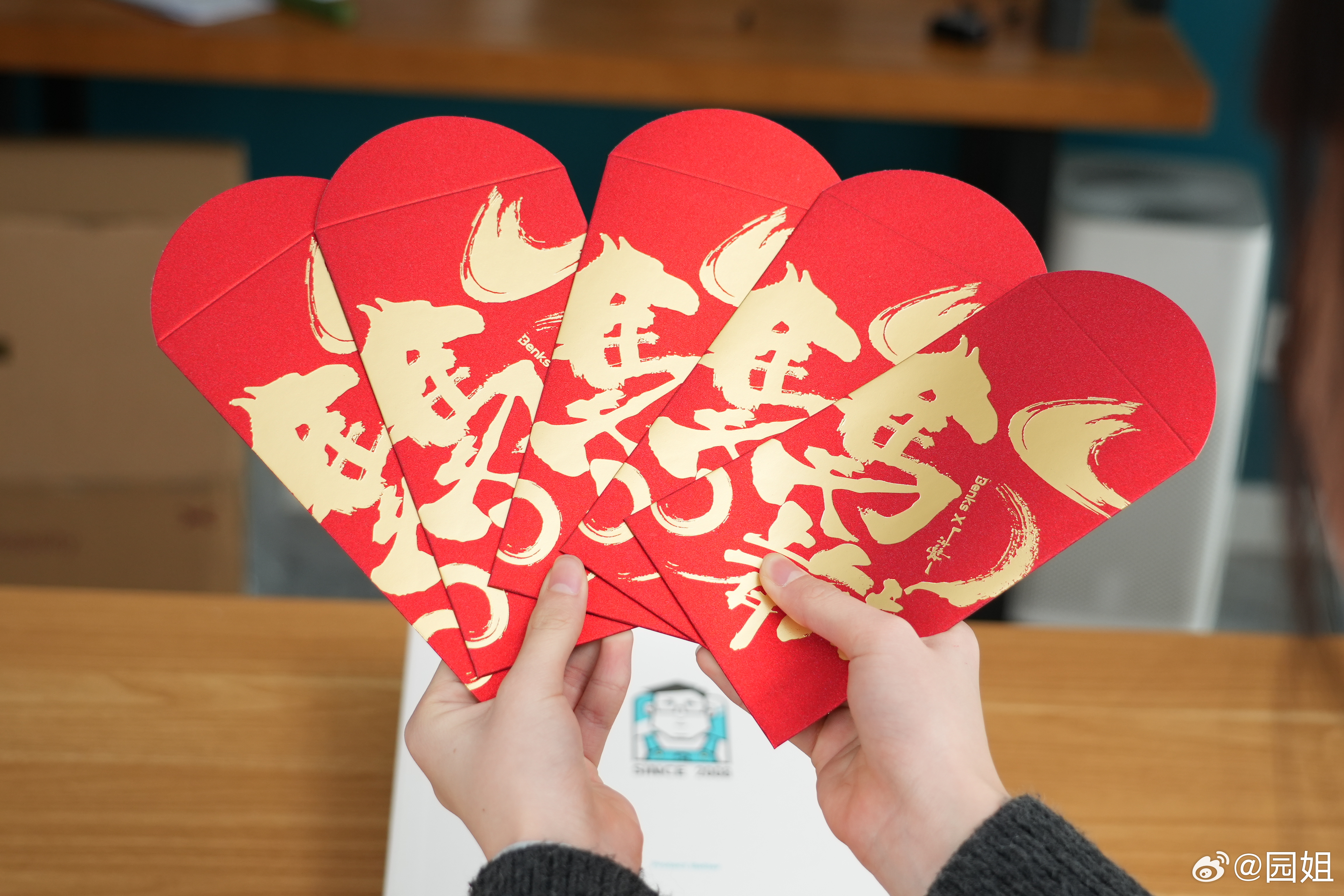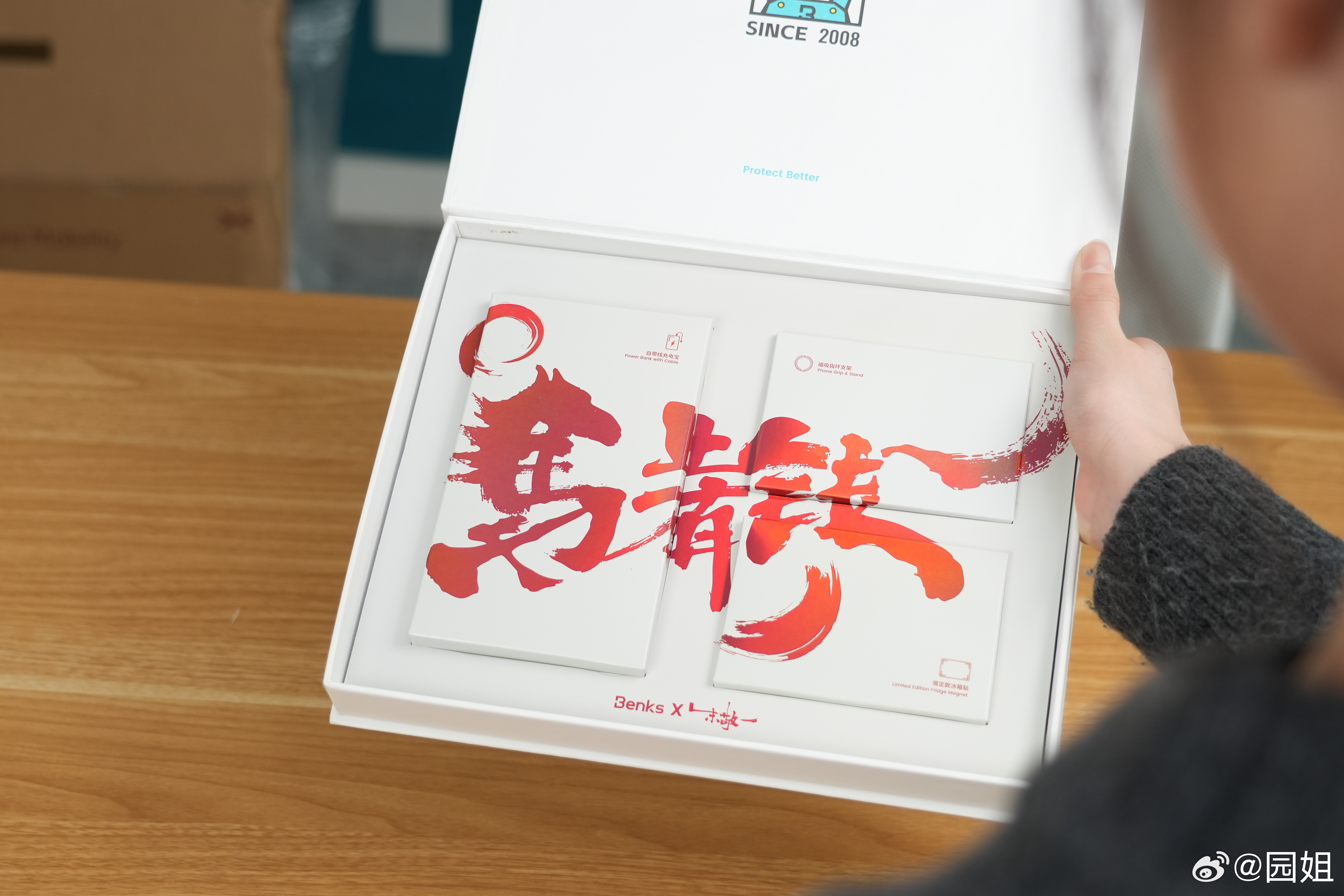 Benks的新年礼盒很喜庆,新年红包还有定制的冰箱贴都满满的新年气息,而且马年凯