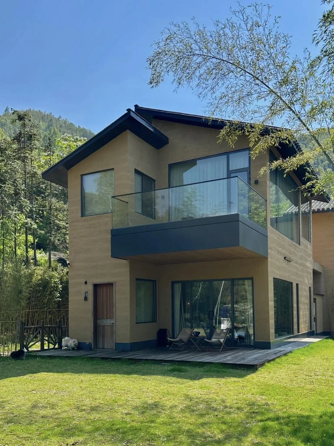 ✨草坪庭院自带桌椅🪑可以坐着看风景,晚上在庭院里举行烧烤派对🎉私汤温泉♨️纯天然的温泉水,泡完皮肤滑滑的!
