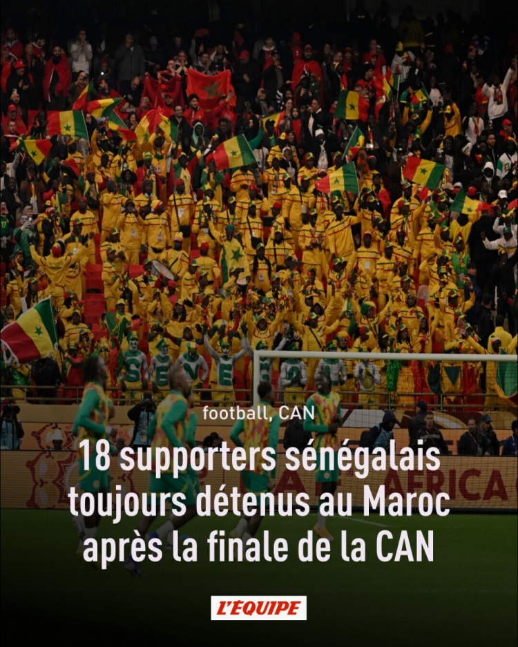 18名塞内加尔球迷因非洲杯决赛期间的骚乱事件被拘留,《队报》称这些球迷从2026年2月6日起开始无限期绝食抗议,理由包括案件审理拖延、尚未正式了解指控内容,以及警方审讯和庭审缺乏适当口译支持。