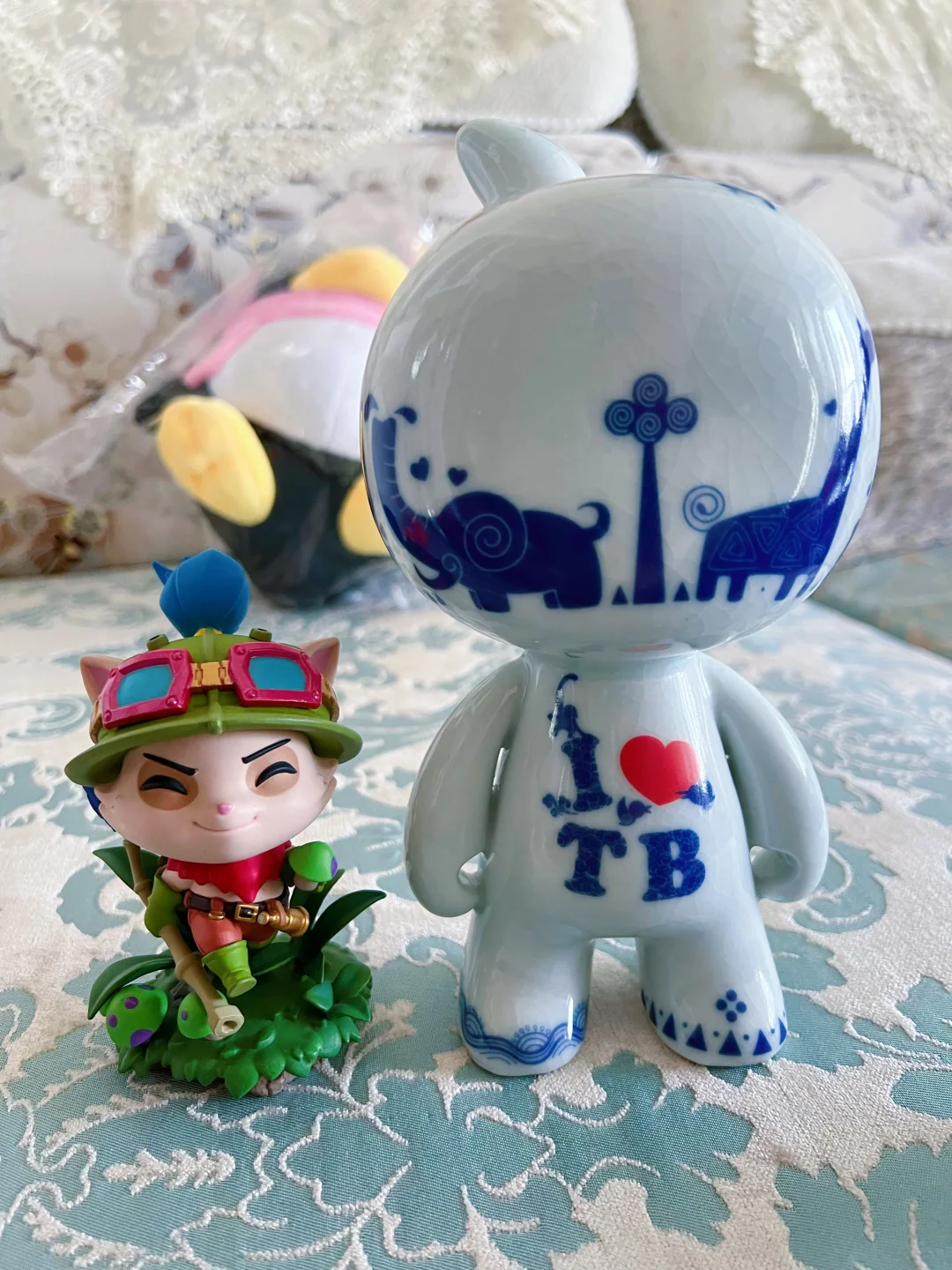 以前在阿里巴巴集团市场部时发的陶瓷淘公仔,绝对的超级限量版,当时好像说是烧制难度极高,只烧成功了几百个,非常稀缺了,一眨眼搁家这么多年了,拿出来和提莫合影一张!