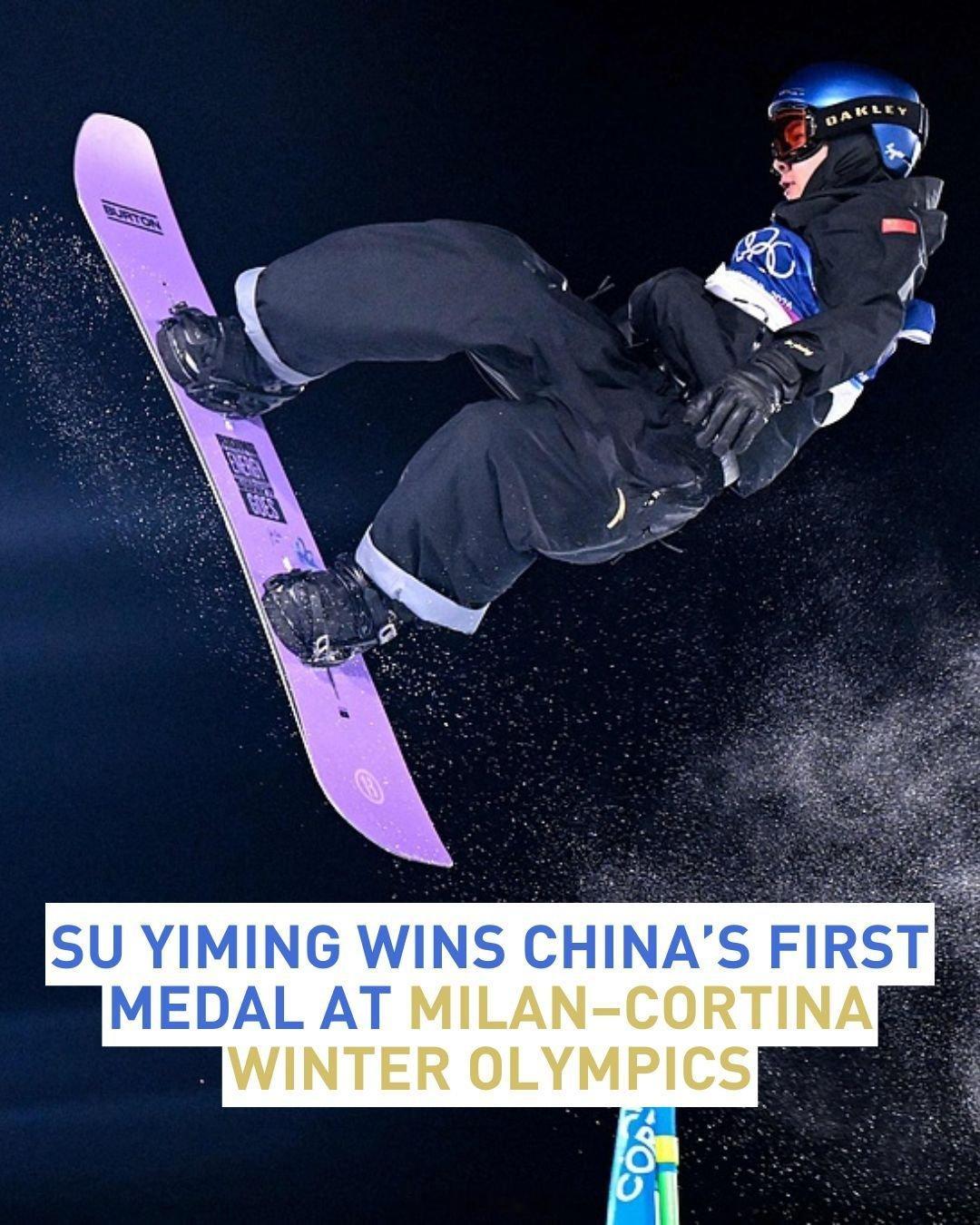 🇨🇳🥉🏂中国单板滑雪运动员苏翊鸣米兰冬奥铜牌 在2026年米兰-科尔蒂纳冬奥会男子单板滑雪大跳台决赛中摘得铜牌!