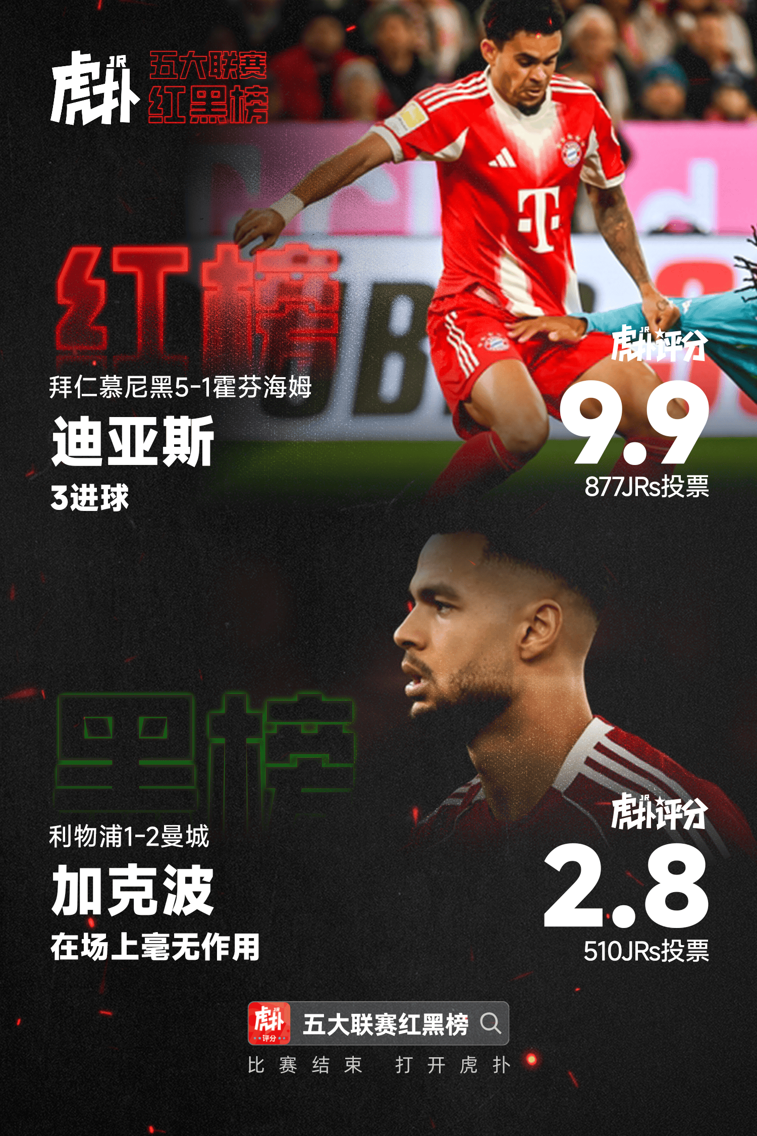 [红黑榜]迪亚斯独造五球;哈兰德补时绝杀带队获胜