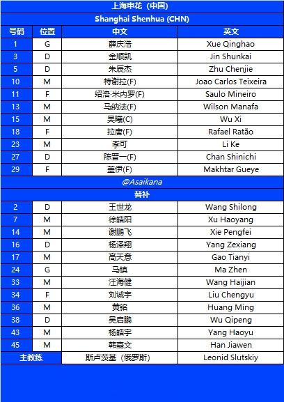 直播吧02月10日讯北京时间20:15,亚冠精英联赛东亚区第7轮,上海申花主场迎战町田泽维亚。赛前,双方首发出炉。