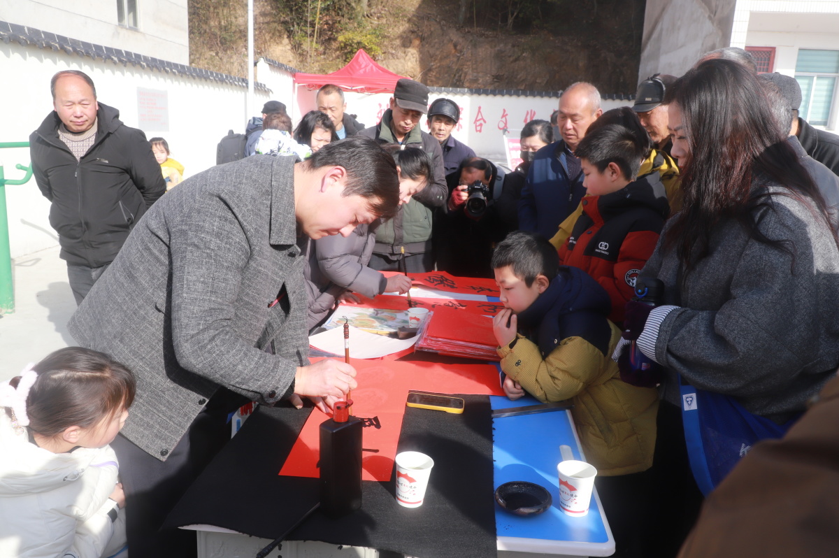 走进乡村年货集现场,热闹的烟火气扑面而来。市集按照品类划分蔬菜区、服装区、干货区、肉类区,各类农特产品、日用商品琳琅满目,摊位前人头攒动,吆喝声、挑选声、欢笑声交织成温馨的乡村年曲。为增添节日氛围,商城县书法爱好者还亲临现场泼墨送春联,红底黑字的吉祥春联被市民争相领取,让整个市集年味愈发浓厚。