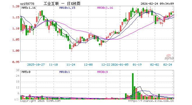 2月24日,工业互联网ETF鹏华(159778)开盘涨0.78%,报1.169元。工业互联网ETF鹏华(159778)重仓股方面,汇川技术开盘涨2.54%,比亚迪涨1.89%,兆易创新涨2.85%,北方华创涨1.17%,工业富联涨1.21%,宁德时代涨2.00%,科大讯飞涨2.24%,海康威视涨0.62%,豪威集团涨1.02%,国电南瑞涨0.96%。
