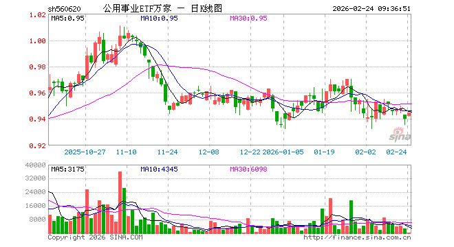 2月24日,公用事业ETF万家(560620)开盘涨0.21%,报0.942元。公用事业ETF万家(560620)重仓股方面,长江电力开盘涨0.50%,中国核电涨0.47%,三峡能源涨0.25%,国电电力涨0.43%,永泰能源涨1.23%,华能国际涨0.14%,国投电力涨0.16%,中国广核涨0.52%,上海电力涨0.74%,川投能源涨0.29%。
