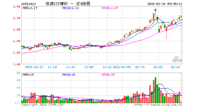 2月26日,资源ETF博时(510410)开盘涨1.09%,报2.233元。资源ETF博时(510410)重仓股方面,紫金矿业开盘涨0.66%,中国铝业涨1.63%,洛阳钼业涨1.19%,华友钴业涨3.39%,中国石油跌0.64%,中国石化跌0.31%,中国神华涨0.00%,北方稀土跌0.12%,陕西煤业涨0.39%,中国海油跌0.77%。