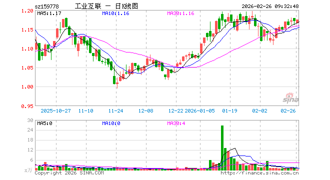 2月26日,工业互联网ETF鹏华(159778)开盘跌0.43%,报1.166元。工业互联网ETF鹏华(159778)重仓股方面,汇川技术开盘跌0.35%,比亚迪跌0.05%,兆易创新涨1.50%,北方华创涨0.00%,工业富联涨0.02%,宁德时代跌1.69%,科大讯飞涨0.02%,海康威视跌0.19%,豪威集团涨0.22%,国电南瑞跌0.04%。