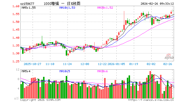 2月26日,中证1000增强ETF银华(159677)开盘涨0.51%,报1.568元。中证1000增强ETF银华(159677)重仓股方面,富奥股份开盘涨0.36%,焦作万方涨0.76%,蓝特光学涨1.34%,振华风光涨0.21%,同方股份跌0.32%,绿联科技跌0.10%,宏达股份涨0.15%,鹏欣资源涨0.10%,苏州天脉涨0.26%,依顿电子涨1.51%。