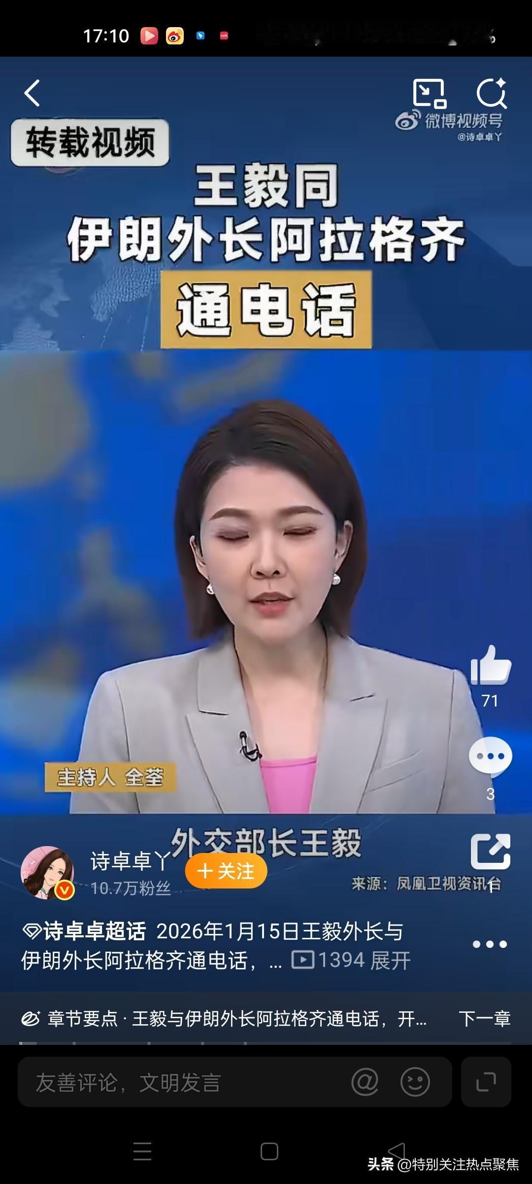 中方支持伊朗政府和人民维护国家稳定和正当权益,希望各方珍惜和平,保持克制。“中方愿为此继续发挥负责任大国作用” “若美国攻击伊朗,中俄是否会支持伊朗”?外交部:中方支持伊朗政府和人民维护国家稳定和正当权益,希望各方珍惜和平,保持克制。 中国外交部在2月26日的例行记者会上直接回应“若美国攻击伊朗,中方是否支持伊朗”的提问时,首次明确使用“支持伊朗政府和人民维护国家稳定和正当权益”的表述,这一表态引发国际社会广泛关注,因其在呼吁和平的基础上增添了政治支持色彩,且同步强调“发挥负责任大国作用”,暗示中方可能主动介入斡旋。@北京日报19 一、中方表态的核心立场 政治支持升级 相比此前呼吁和平的常规表述,本次外交部发言人毛宁首次在伊朗问题上使用“支持维护正当权益”的措辞,明确传递对伊朗政府的政治支持。结合“中国和伊朗两国人民传统友好”的情感联结表述,被解读为在冲突敏感期强化双边关系定位。@环球时报14 反对武力与干涉内政 中方重申一贯立场:反对任何国家干涉伊朗内政,反对在国际关系中使用或威胁使用武力。这一原则性立场针对美国近期对伊朗的军事威慑(如航母部署、撤侨警告等)直接回应。@人民日报68 主动介入意愿 毛宁提到“中方愿为此继续发挥负责任大国作用”,其中“为此”指代为局势降温,暗示中国可能采取斡旋等主动外交行动。此前中国已在联合国安理会反对武力威胁伊朗,呼吁国际社会支持伊朗克服困难。@央视网14央视网 二、表态背景与局势演进 美伊对抗持续升级:2026年1月起,美国被曝考虑对伊朗实施有限军事打击,特朗普宣称“调集重兵前往伊朗”,伊朗则警告将封锁霍尔木兹海峡并反击侵略。@日照日报8 中方立场逐步深化: 1月12日:首次表态“希望伊朗政府和人民克服困难,保持国家稳定”;@国际在线新闻 1月23日:呼吁“各方珍惜和平,保持克制”;@辽宁共青团18 2月26日:升级为“支持维护正当权益”,回应美国可能发动攻击的假设性提问。@中国新闻网49国际在线新闻 三、国内外反应与战略意义 伊朗的诉求与回应 伊朗外长强调“不惜一切代价捍卫主权”,同时表示愿通过谈判解决分歧。伊方此前向中方通报局势进展,赞赏中国维护地区稳定的努力。@阿卡宇航2631 中俄支持路径差异 俄罗斯被曝计划与伊朗签署国防安全条约,存在军事合作空间;而中国坚持不结盟政策,主要通过经济协作(如人民币结算石油贸易)、政治斡旋及多边框架支持伊朗,规避直接军事介入。 地区与全球影响 中方立场旨在平衡三重目标: 维护中东稳定,避免战争冲击全球能源供应链; 坚持国际法主权平等原则,抵制单边霸凌;6 保护中国在伊投资及公民安全,实施动态防护机制(如领事保护热线)。诗卓卓丫 四、后续走向关键点 当前局势核心矛盾在于: 美伊博弈的失控风险:若美国坚持军事施压,伊朗可能以封锁霍尔木兹海峡反制,触发全球能源危机; 外交解决的可能性:中方呼吁的“对话解决分歧”需美伊共同妥协,而伊朗表明谈判需“基于公平公正,而非零和博弈”;@央视军事31 中国的调停角色:作为与美伊均保持沟通的第三方,中方或通过联合国、上合组织等平台推动多边谈判,但成效取决于各方是否愿为局势降温。34