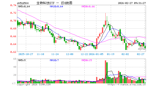 2月27日,生物科技ETF(516500)开盘涨0.00%,报0.634元。生物科技ETF(516500)重仓股方面,药明康德开盘跌0.13%,恒瑞医药跌0.18%,迈瑞医疗跌0.20%,复星医药涨0.00%,上海莱士跌0.16%,百济神州跌1.94%,长春高新跌3.50%,康龙化成跌0.30%,泰格医药跌0.53%,甘李药业涨0.30%。