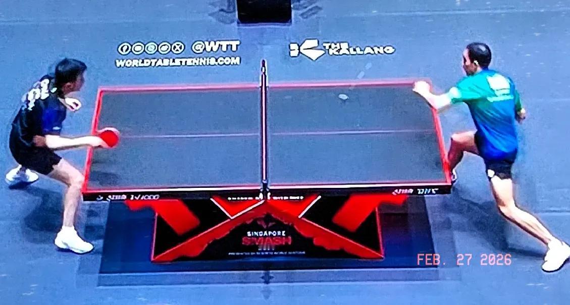 WT丅新加坡大满贯男单1/8决赛,陈垣宇对世界第二、巴西选手雨果的比赛正在激烈进行中。 雨果11-6先赢1分,陈垣宇回敬11-9扳平比分1-1。 第3局,双方缠斗白热化,比分交替上升,从4-4打到8-8平,雨果发力10-8拿到赛点,陈垣宇绝地反击,连胜4分,12-10单局大逆转,大比分2-1反超领先……