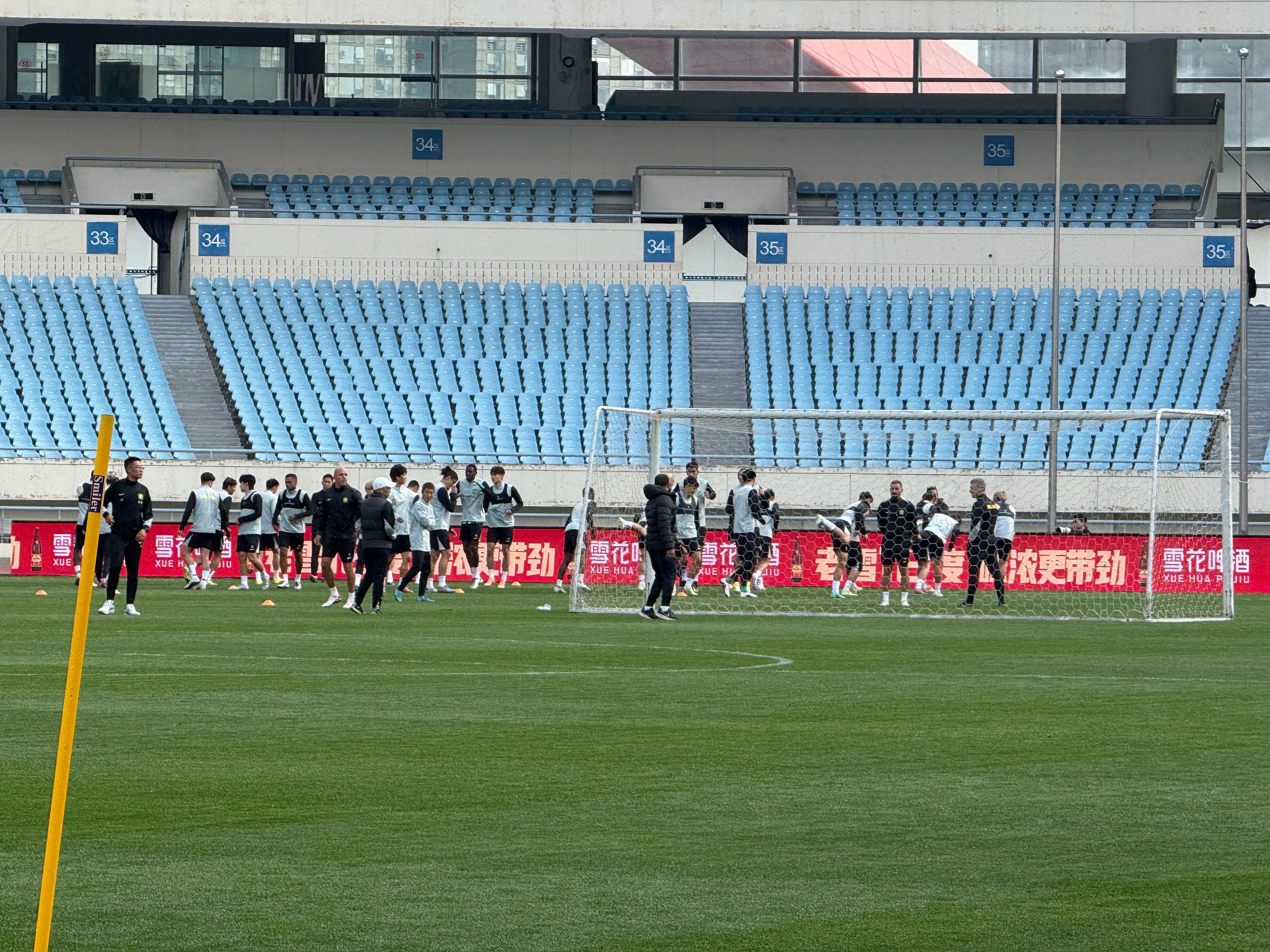 超级杯赛前训练,除此前泰国集训期间不慎受伤的何宇鹏外,国安全员到齐,五外援齐整。