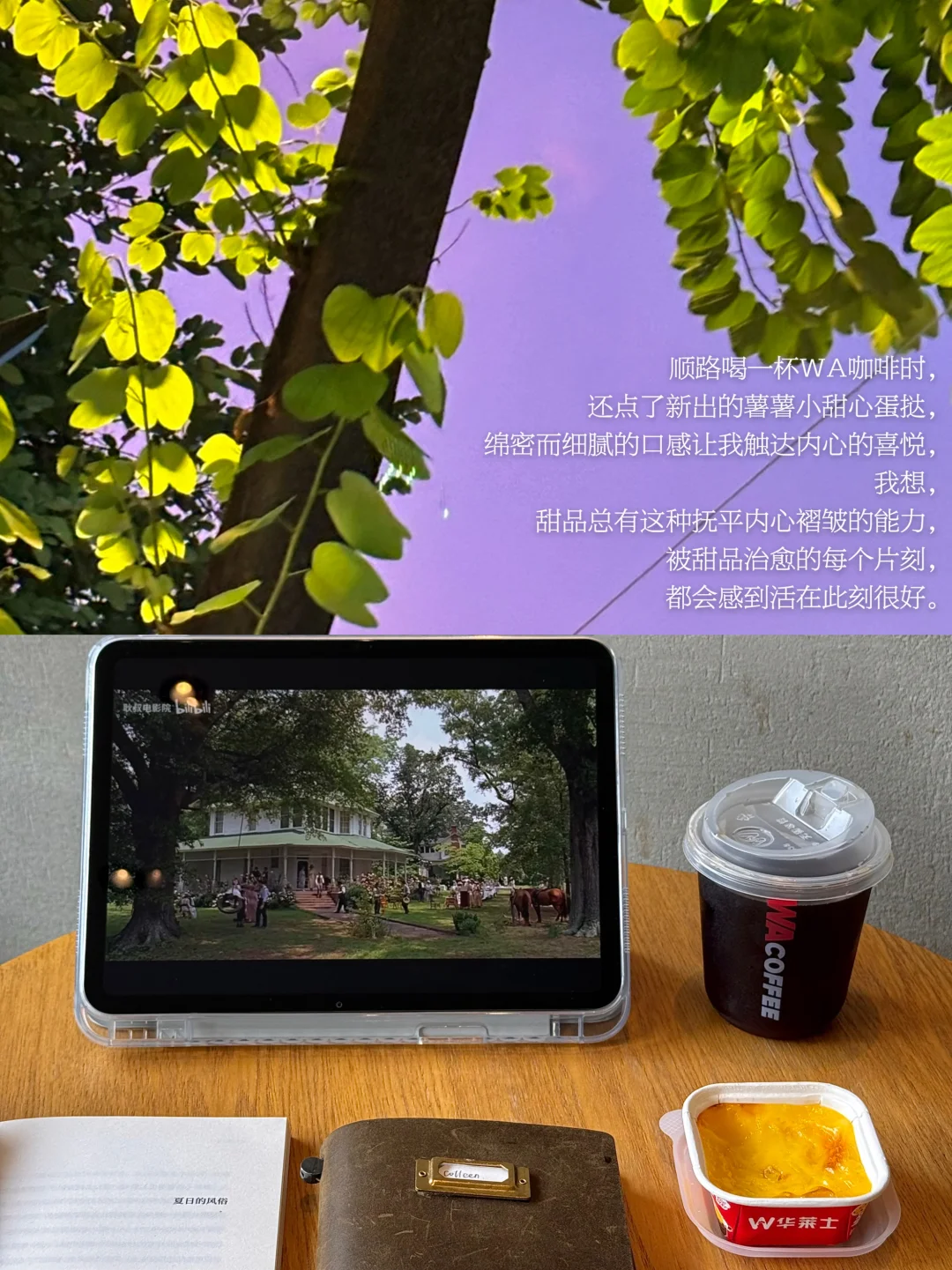 顺路喝一杯WA咖啡时,还点了新出的薯薯小甜心蛋挞,绵密而细腻的口感让我触达内心的喜悦,我想,甜品总有这种抚平内心褶皱的能力,被甜品治愈的每个片刻,都会感到活在此刻很好。