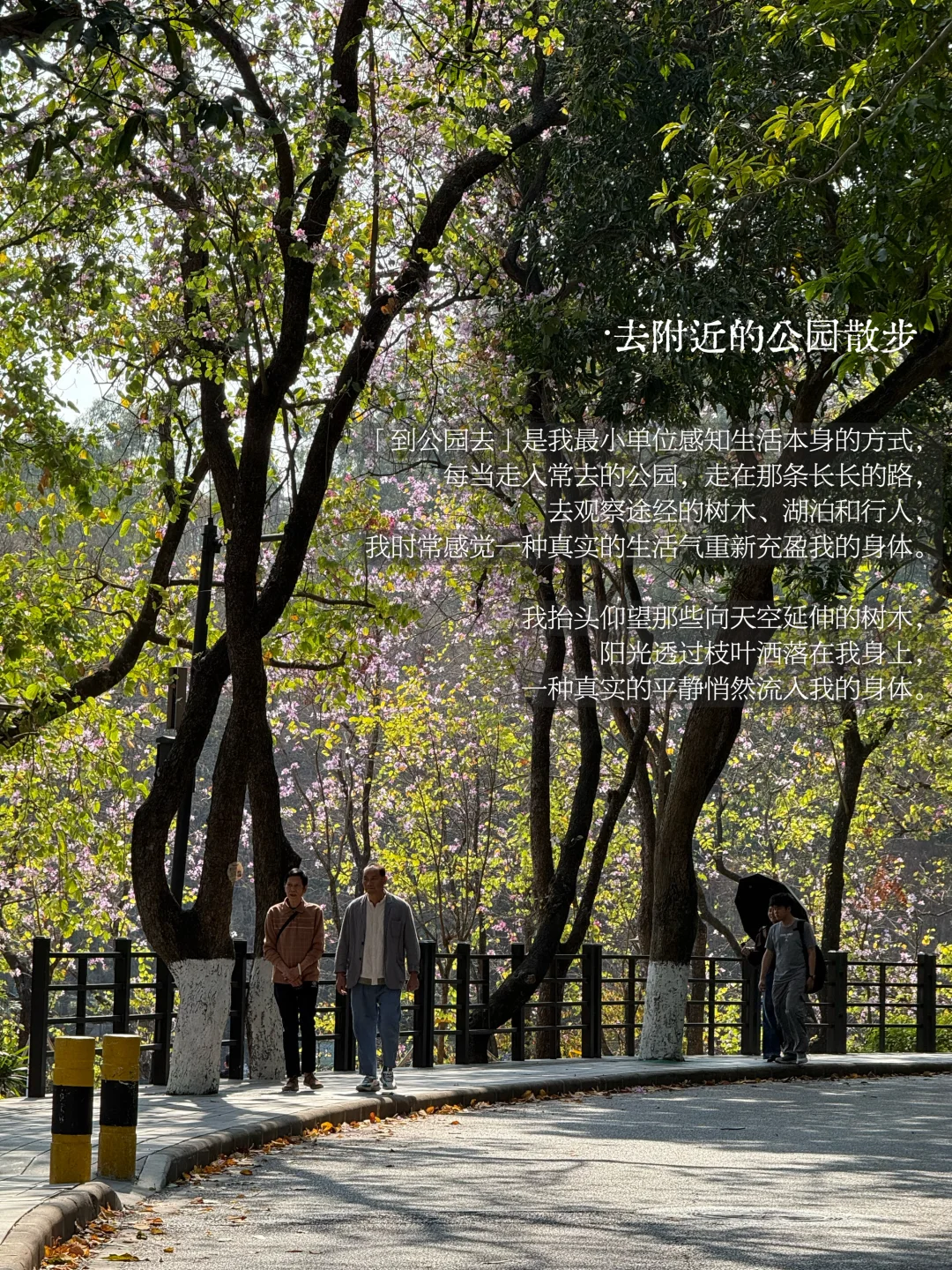 每当走入常去的公园,走在那条长长的路,去观察途经的树木、湖泊和行人,我时常感觉一种真实的生活气重新充盈我的身体。