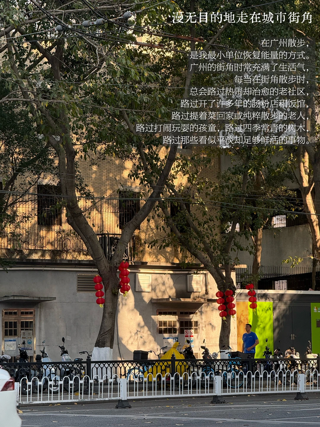 在广州散步,是我最小单位恢复能量的方式。广州的街角时常充满了生活气。这几年,我总觉得,只要漫无目的地散步于街角,我总会找到生活本身,总能找回内心的自我,不再悬浮,而流入确定感的生活。