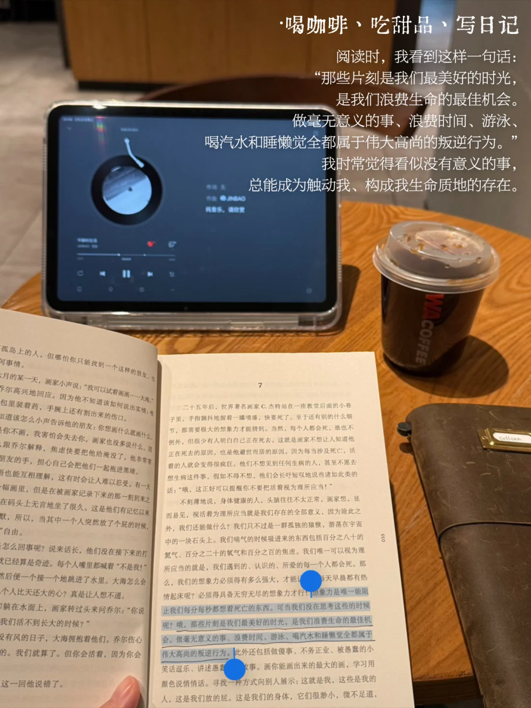 我时常觉得看似没有意义的事,总能成为触动我、构成我生命质地的存在。喝咖啡、吃甜品、写日记对我来说,就是这样的存在,看似没有意义的小事,却能够让我感知片刻、触达内心。