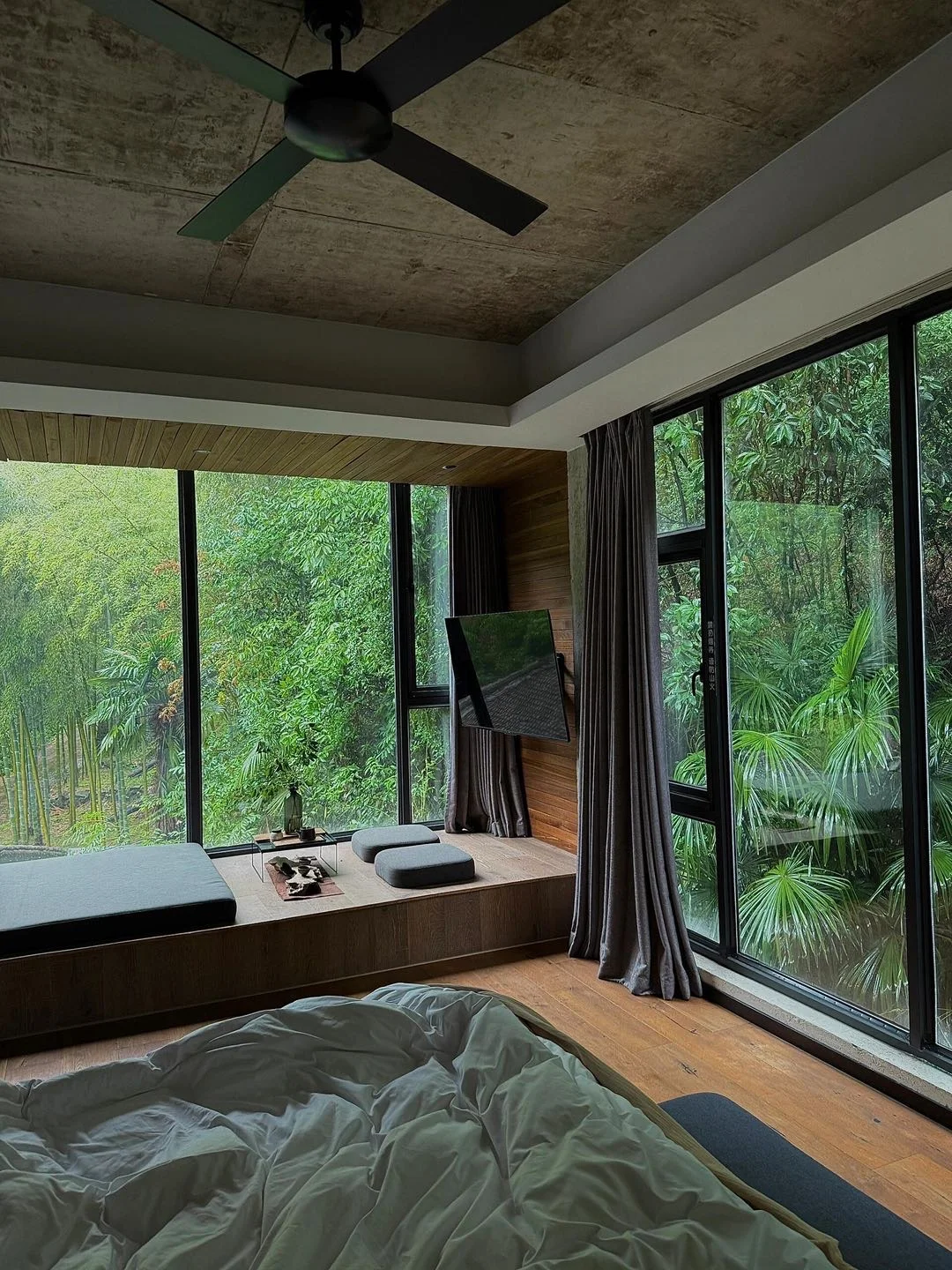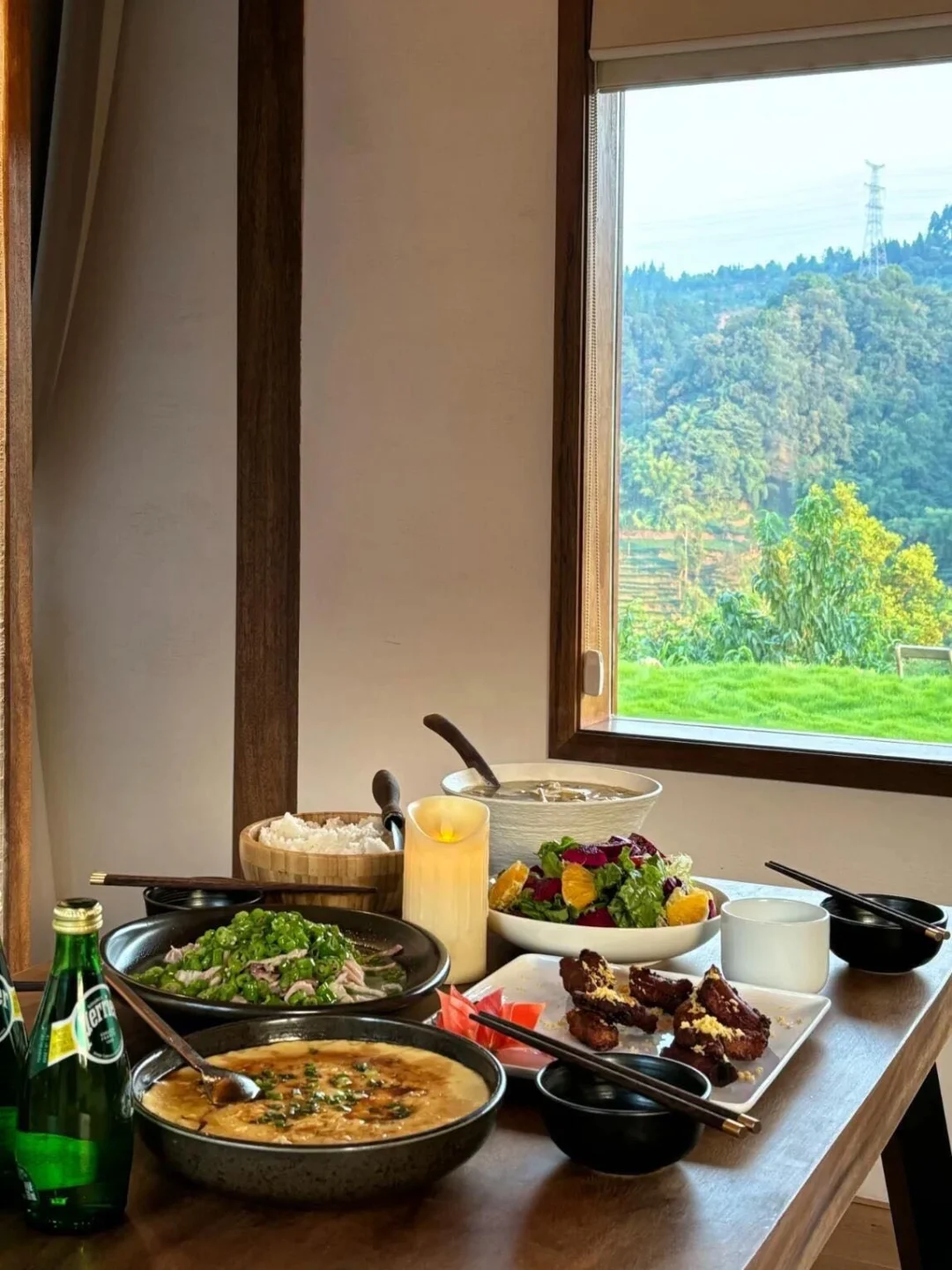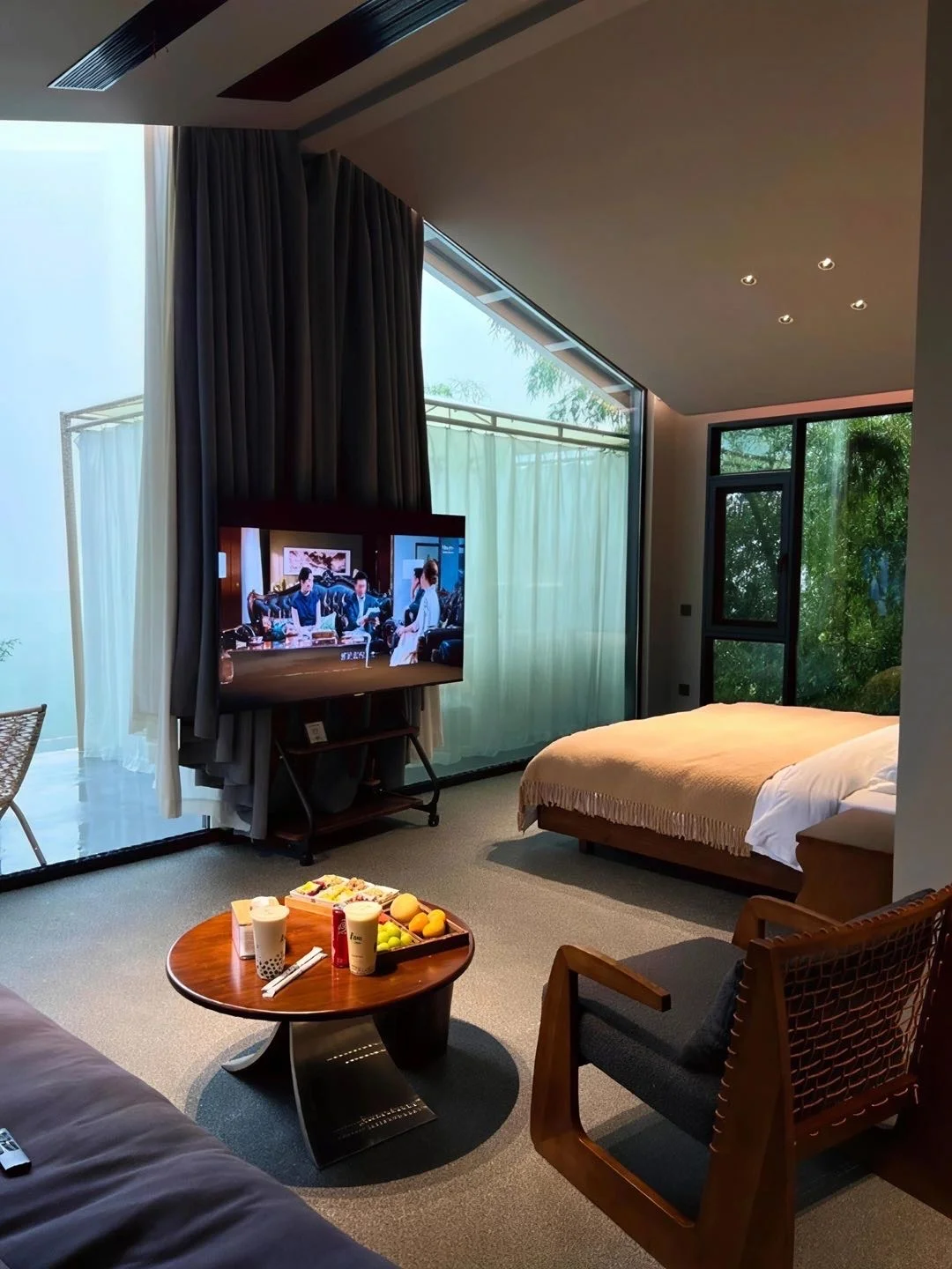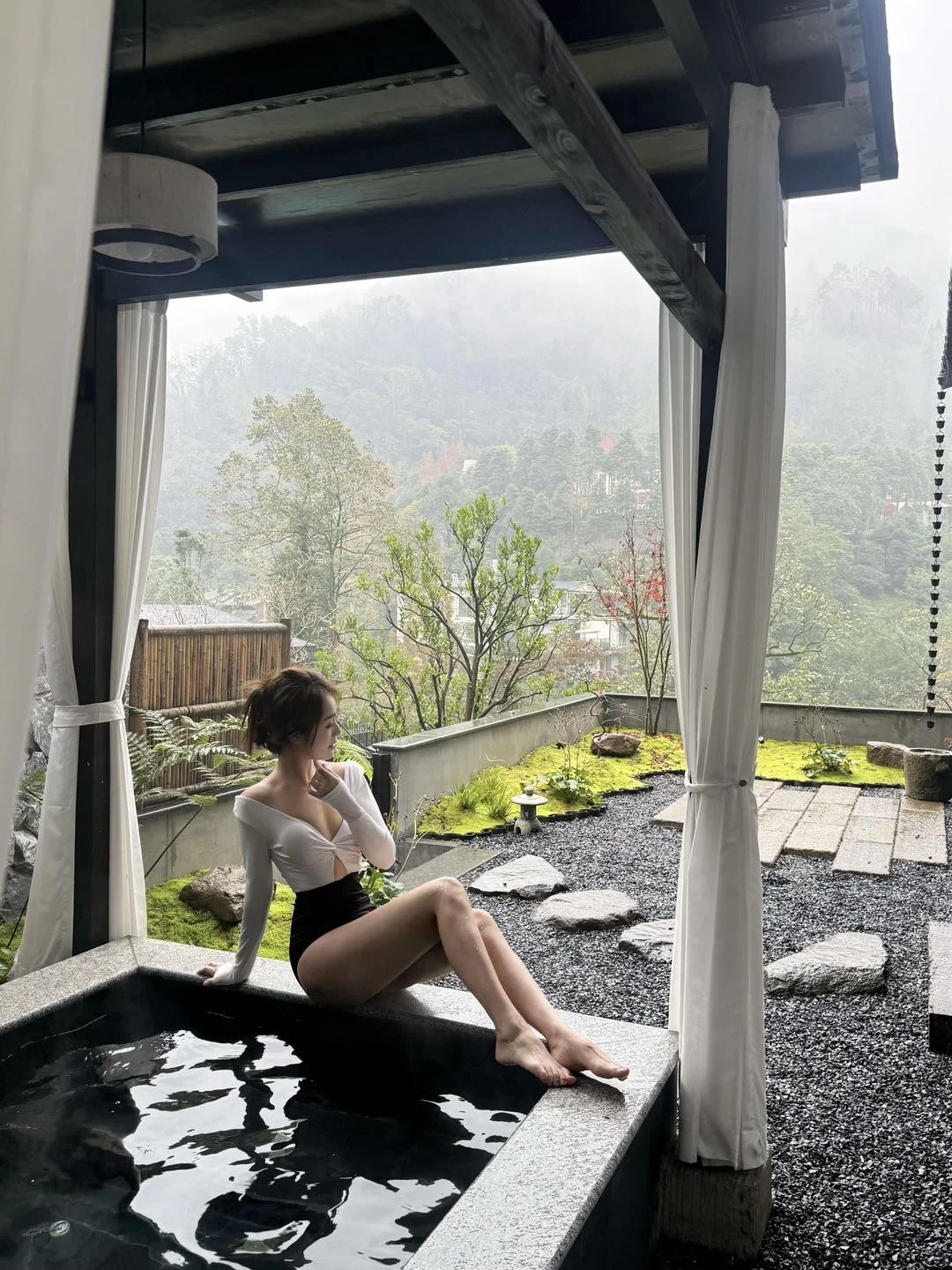 院子里自带超大温泉泡池♨️不用去公共池里人挤人啦💯泡一泡消散疲惫感🥰抬眼就是山林美景🍃