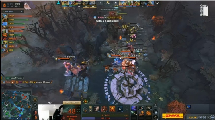 [17分钟]中路团战NTS小小VT两个,侧翼xNova百戏嘲讽留到了Ws马尔斯!残局Ame凯支援双杀,XG一波1换3打回不少经济差!
