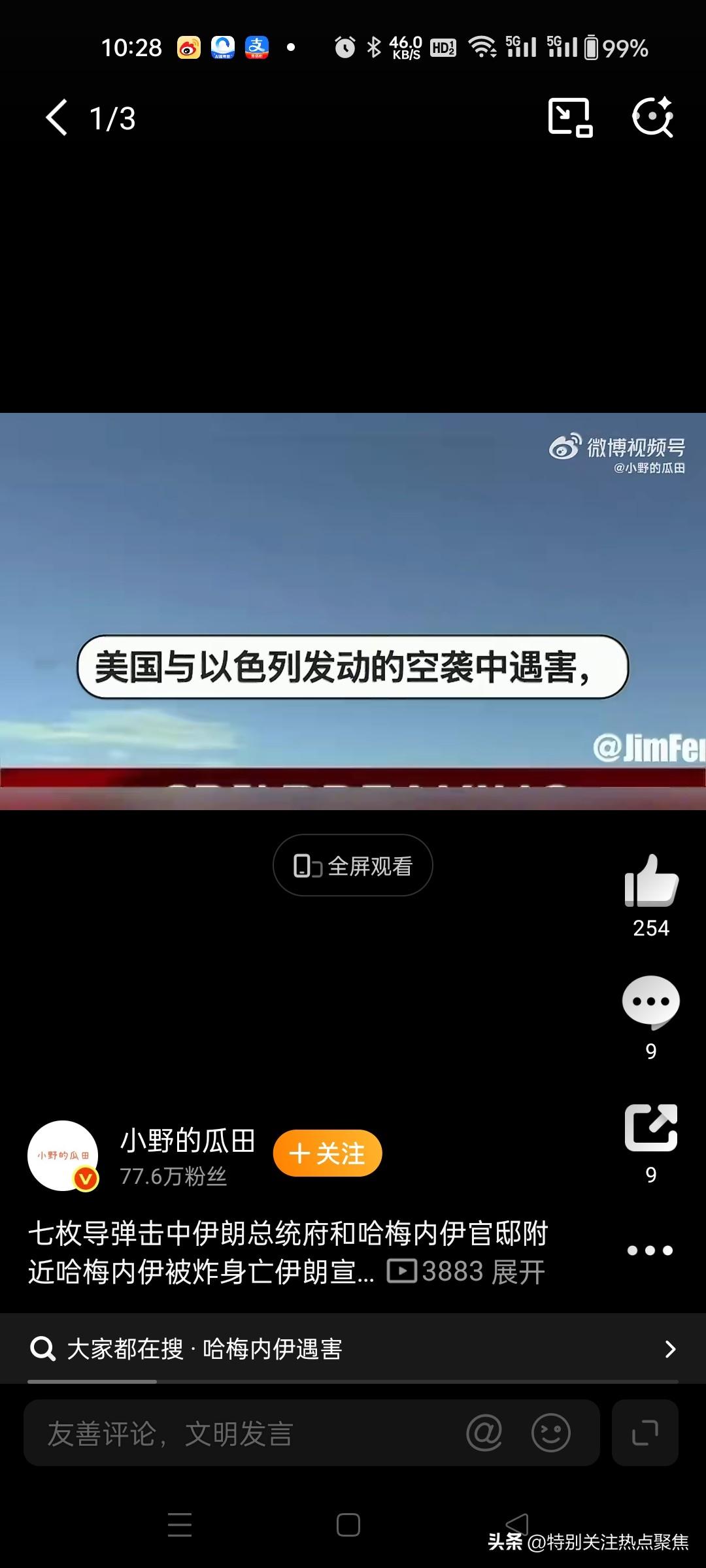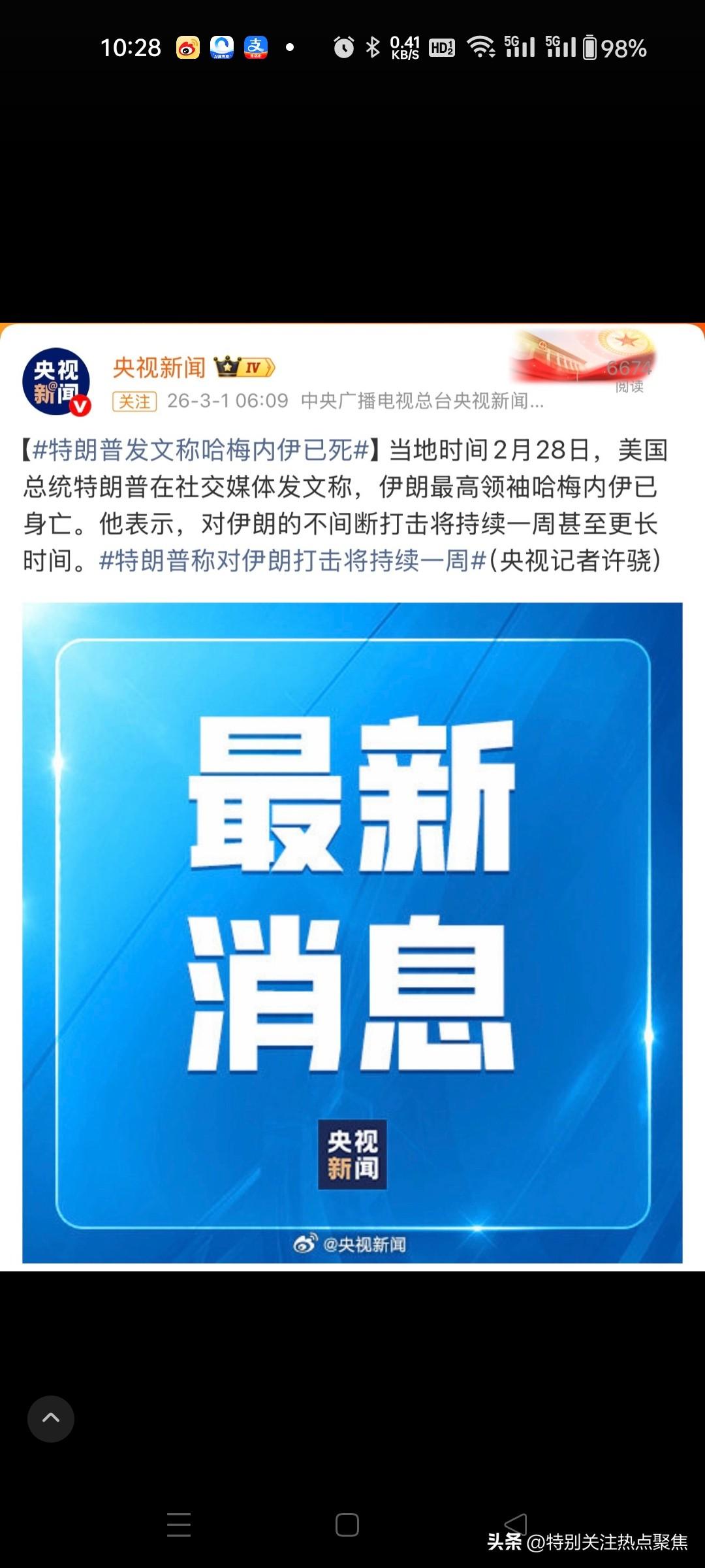 哈梅内伊遇袭身亡,伊朗政府宣布40天全国哀悼 据央视新闻,总台记者当地时间3月1日获悉,伊朗最高领袖哈梅内伊在2月28日上午遇袭 伊朗最高领袖哈梅内伊于2026年2月28日上午在美以联合空袭中遇袭身亡,伊朗官方媒体及多家权威信源确认此消息。 伊朗政府宣布自3月1日起进入为期40天的全国哀悼期,并宣布全国放假7天以示悼念。 哈梅内伊终年87岁,自1989年起担任伊朗最高领袖,此前曾于1981年至1989年任伊朗总统。 伊朗国家电视台称其“在领袖办公室工作岗位上殉职”,遗体已在官邸废墟中被找到。 目前伊朗政权正面临领导层交接的关键时刻,继任人选将由“专家会议”选举产生。 伊朗最高领袖哈梅内伊于2月28日上午在美国和以色列的联合空袭中遇袭身亡,伊朗政府宣布自3月1日起全国哀悼40天,并放假7天,引发国际社会对中东局势升级的担忧。@环球时报46paingod ⚡️ 一、事件核心确认 遇袭细节 哈梅内伊在德黑兰领袖办公室履职时遭美以导弹精准打击身亡,遗体于官邸废墟中被发现。空袭发生于2月28日早间,为美以联合军事行动“史诗怒火”的核心目标之一,行动中伊朗防空系统、导弹基地等多处设施被毁。 关联伤亡:除哈梅内伊外,其女儿、女婿、孙女及一名儿媳在袭击中丧生。@新华社1429 官方回应与哀悼安排 伊朗国家电视台、法尔斯通讯社等官媒确认死讯,政府宣布3月1日起全国哀悼40天,期间放假7天。此举被视为对宗教领袖的最高规格悼念,同时为权力交接留出缓冲期。@环球网135 🌍 二、冲突背景与军事行动 美以行动逻辑 行动目标:美国中央司令部声明称打击旨在“摧毁伊朗安全机构”,重点针对革命卫队指挥中枢及核设施相关领导人。@财联社APP43 情报渗透:以方透露行动依赖对伊朗高层动向的精准监控,沙姆哈尼(最高国家安全委员会秘书)等多名安全领导层成员同步被击杀。14 特朗普表态:称哈梅内伊之死“符合美以情报结论”,并威胁持续轰炸直至伊朗放弃核计划。@深圳县令6 伊朗反击措施 革命卫队宣布关闭霍尔木兹海峡,切断全球石油运输要道;同时向以色列发射多轮导弹,但多数被拦截。红新月会统计显示,袭击已致伊朗201人死亡、747人受伤。@小野的瓜田1430金刀王小野的瓜田 ⚖️ 三、权力真空与国际影响 继任者博弈 伊朗专家会议紧急启动领袖选举程序,候选人包括前议长拉里贾尼、哈梅内伊次子穆杰塔巴、霍梅尼之孙哈桑·霍梅尼等保守派人士。英媒此前披露伊朗已建立“四层继任体系”应对突发危机。@澎湃新闻29 地缘政治连锁反应 能源与市场动荡:霍尔木兹海峡关闭引发国际油价飙升,黄金价格单日暴涨。1638 外交僵局:伊朗外长称“愿在美以停火后谈判”,但美以声明拒绝短期停火。@观察者网42 中国应对:驻伊使馆暂停签证业务,紧急为中国公民提供旅行证件协助。14马上谈 💡 四、争议与风险提示 信息真实性存疑点 伊朗外交部一度否认哈梅内伊死讯,称其“安然无恙”,而部分外媒报道依赖美以单方信源,伊朗国内舆论存在对“内鬼泄密”的质疑。 需谨慎内容:网传“哈梅内伊被斩首”等细节暂无影像证据佐证。@珠宝君Yu东...1433 社会情绪与未来挑战 伊朗民众自发举行支持政府集会,但内部对哈梅内伊家族遇难存在阴谋论猜测。分析认为,40天哀悼期既是凝聚共识的仪式,也可能成为民众表达诉求的窗口。@凤凰网2337 关键总结:哈梅内伊身亡标志伊朗政治结构面临重构,中东局势进入高危对峙阶段。美以行动暴露伊朗防御漏洞,而封锁海峡、核计划存废将成为后续冲突核心议题。凤凰网萤火虫在线拆台本尊