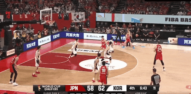 虎扑03月01日讯男篮世预赛:日本男篮对阵韩国男篮的比赛正在进行中。